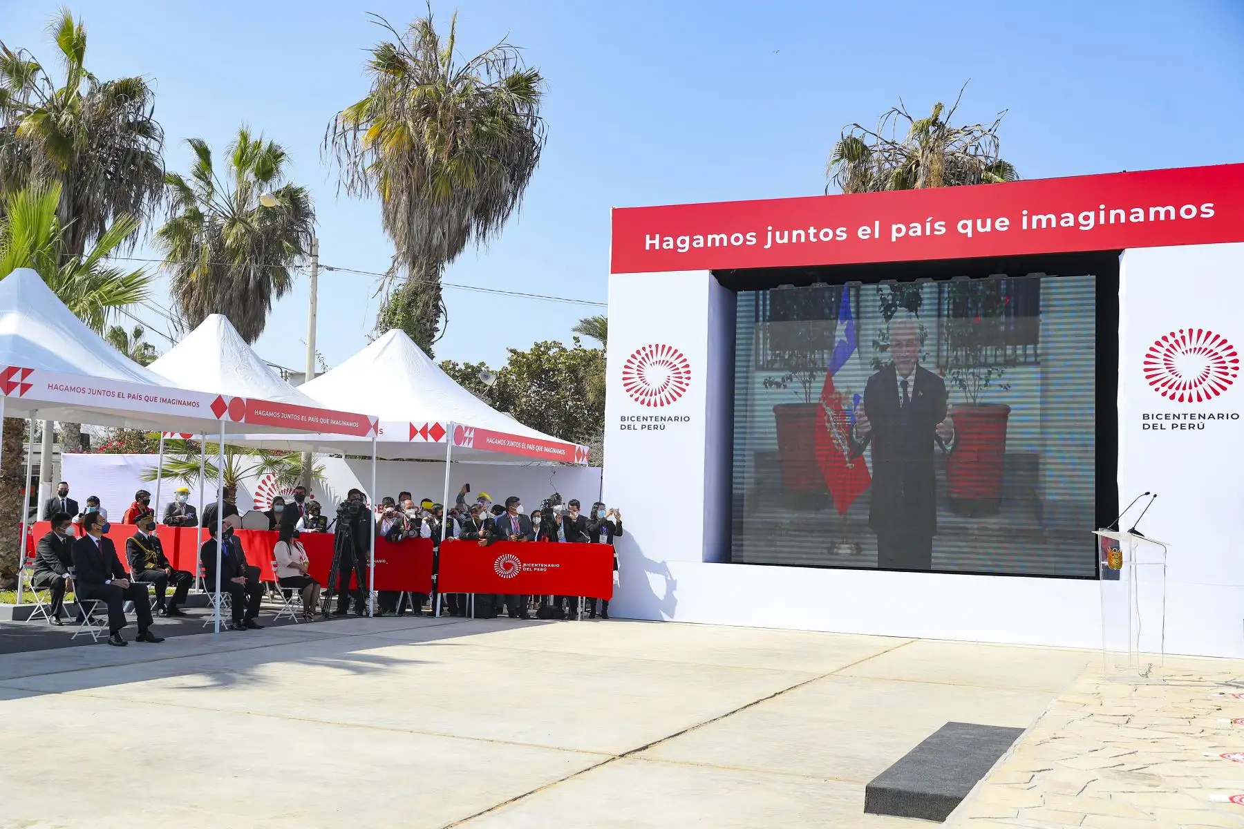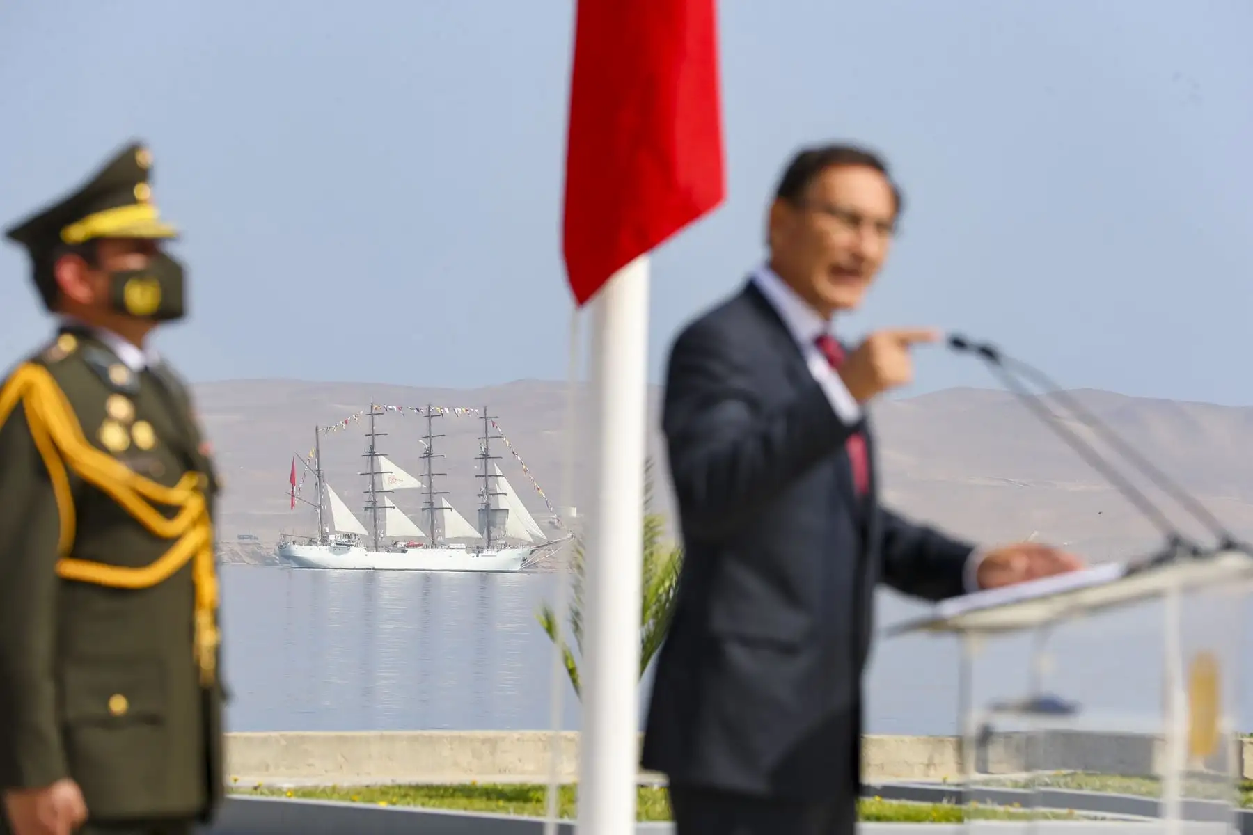 08/09/2020 El presidente de la República Martín Vizcarra, asiste a la conmemoración del bicentenario del desembarco de la Expedición Libertadora, encabezada por el general José de San Martín, en la bahía de Paracas, para apoyar a los patriotas peruanos en su lucha por liberarse del dominio español. Foto: ANDINA/Prensa Presidencia