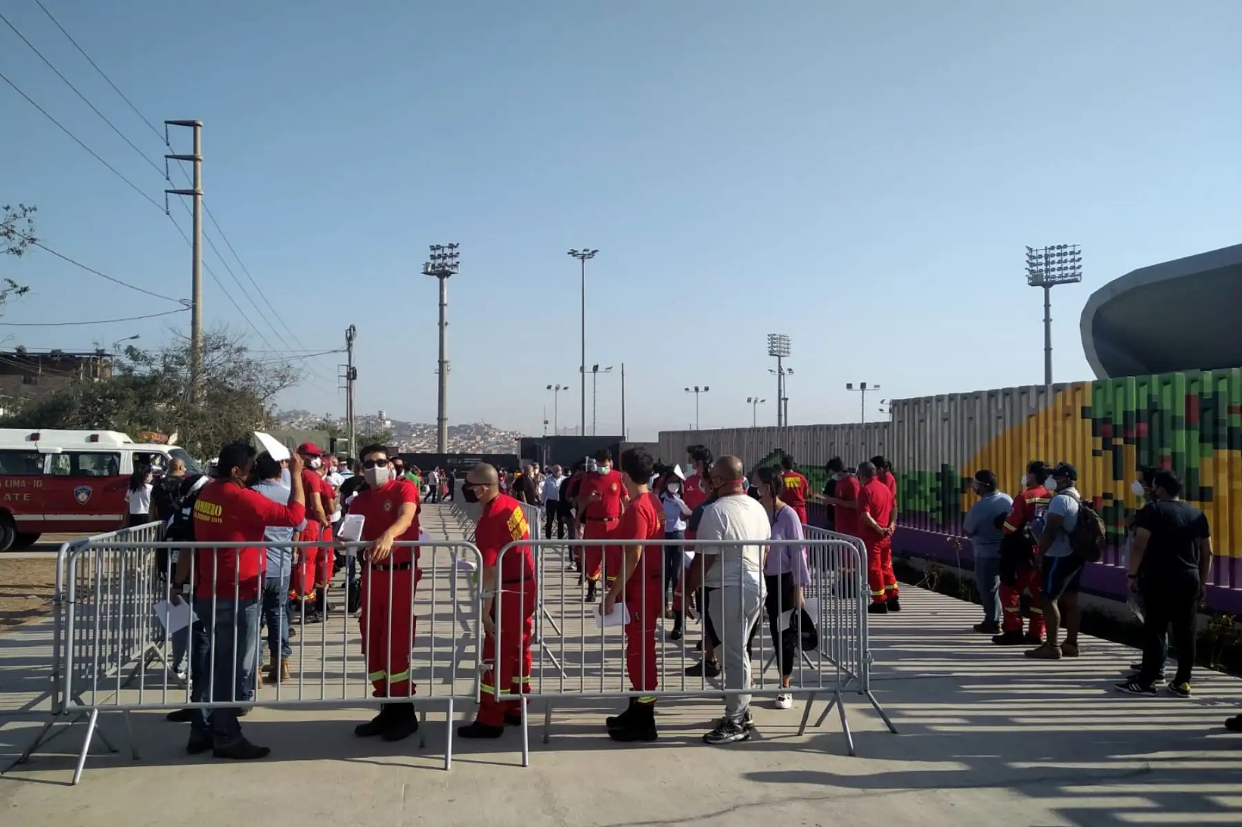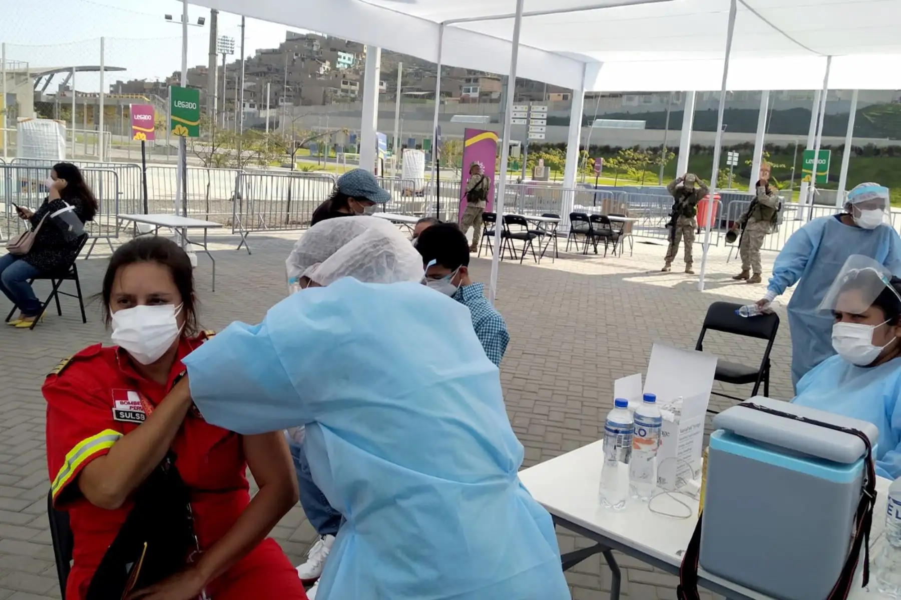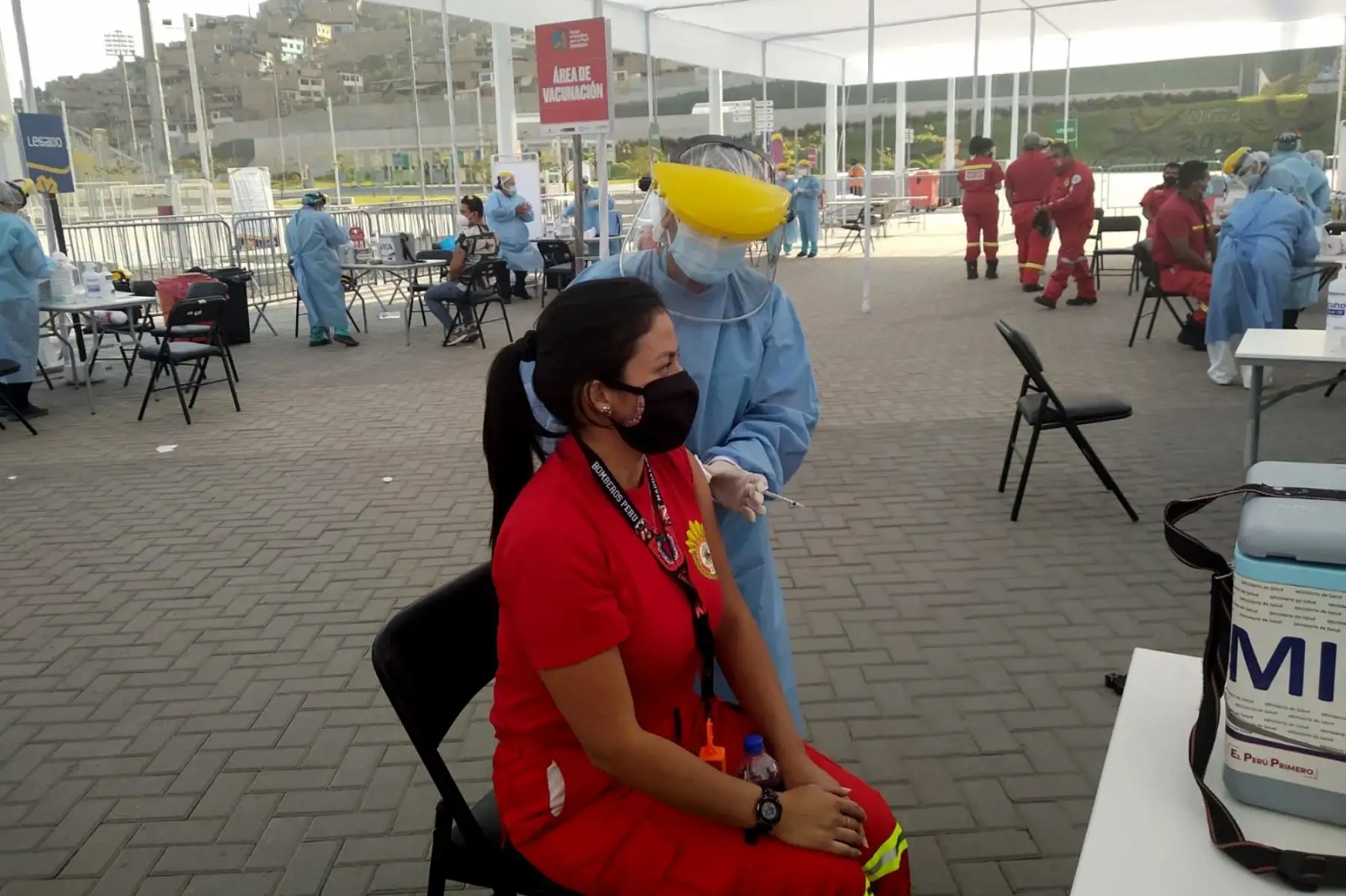 21/04/2021 Ochocientos integrantes del Cuerpo General de Bomberos Voluntarios del Perú fueron vacunados contra el COVID-19 en el Complejo Deportivo Andrés Avelino Cáceres, en Villa María del Triunfo.