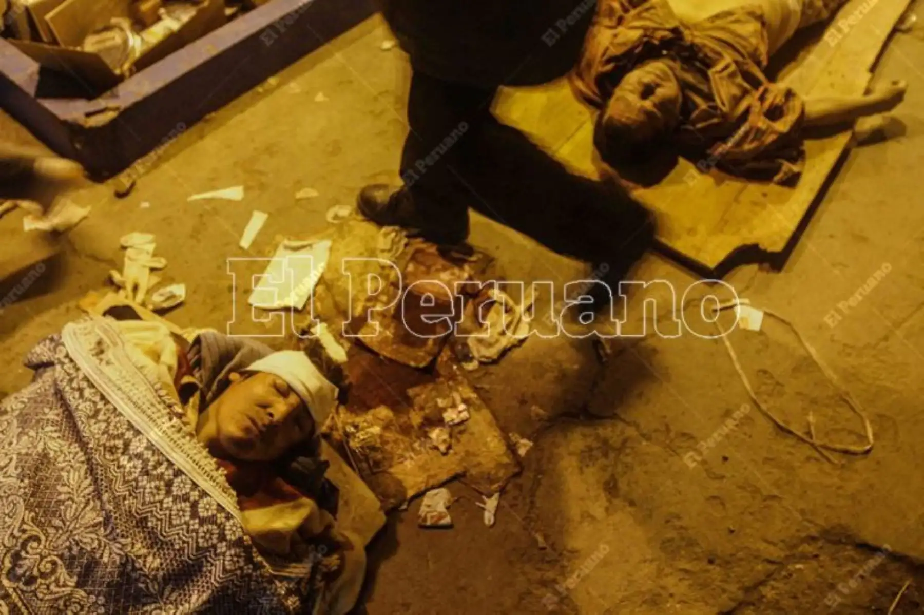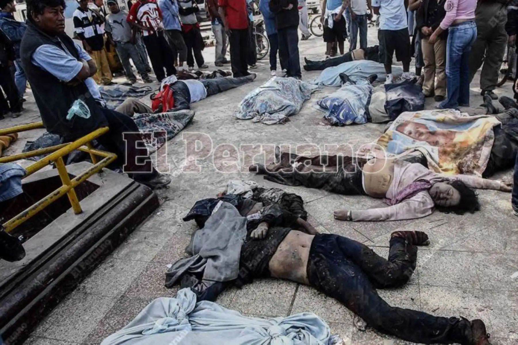 15/08/2020 La Plaza de Armas se convirtió en el espacio donde se acomodaron los cientos de cuerpos de las víctimas mortales. Foto: ANDINA/Carlos Lezama