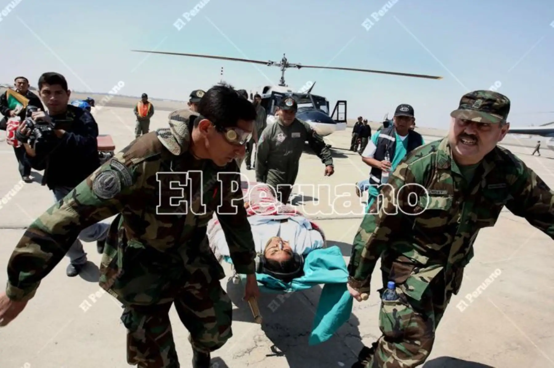 15/08/2020 Pisco, 21 agosto 2007. Traslado de heridos desde la Base Aérea de Pisco. Foto: ANDINA/Jack Ramón
