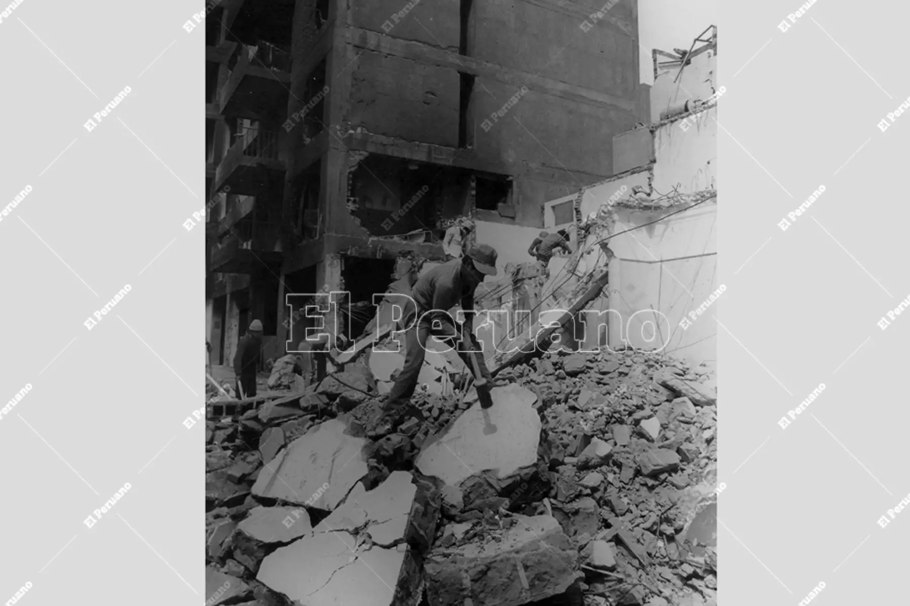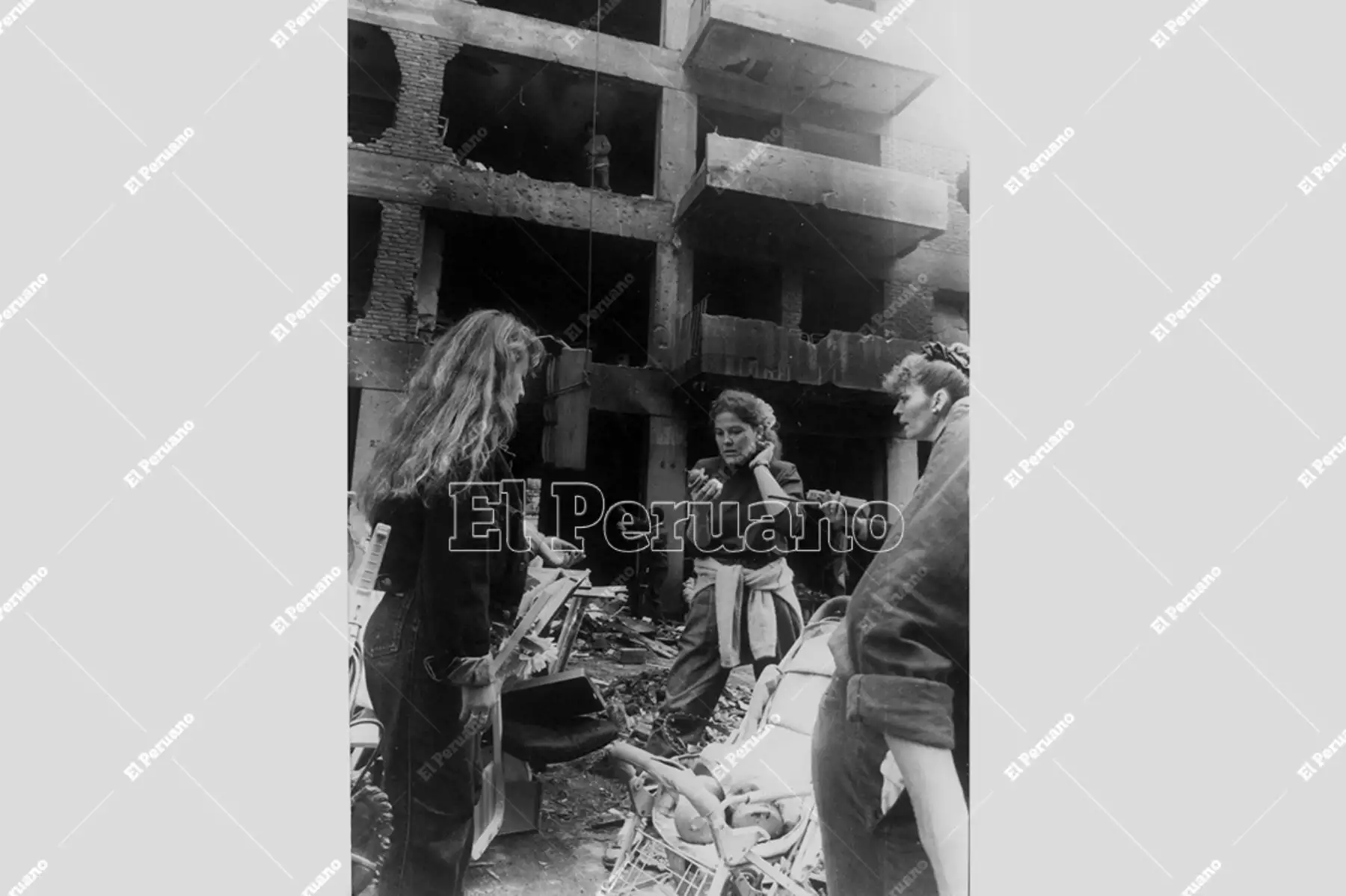 16/07/2022 Lima - 17 jul 1992 / Vecinos afectados y edificio en escombros por atentado terrorista en la calle Tarata en Miraflores. Foto: Archivo Histórico de El Peruano