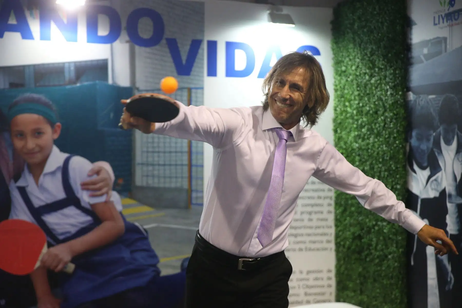 08/10/2025 Ricardo Gareca juega pin pon en CADE 2016.Foto: ANDINA/archivo.
