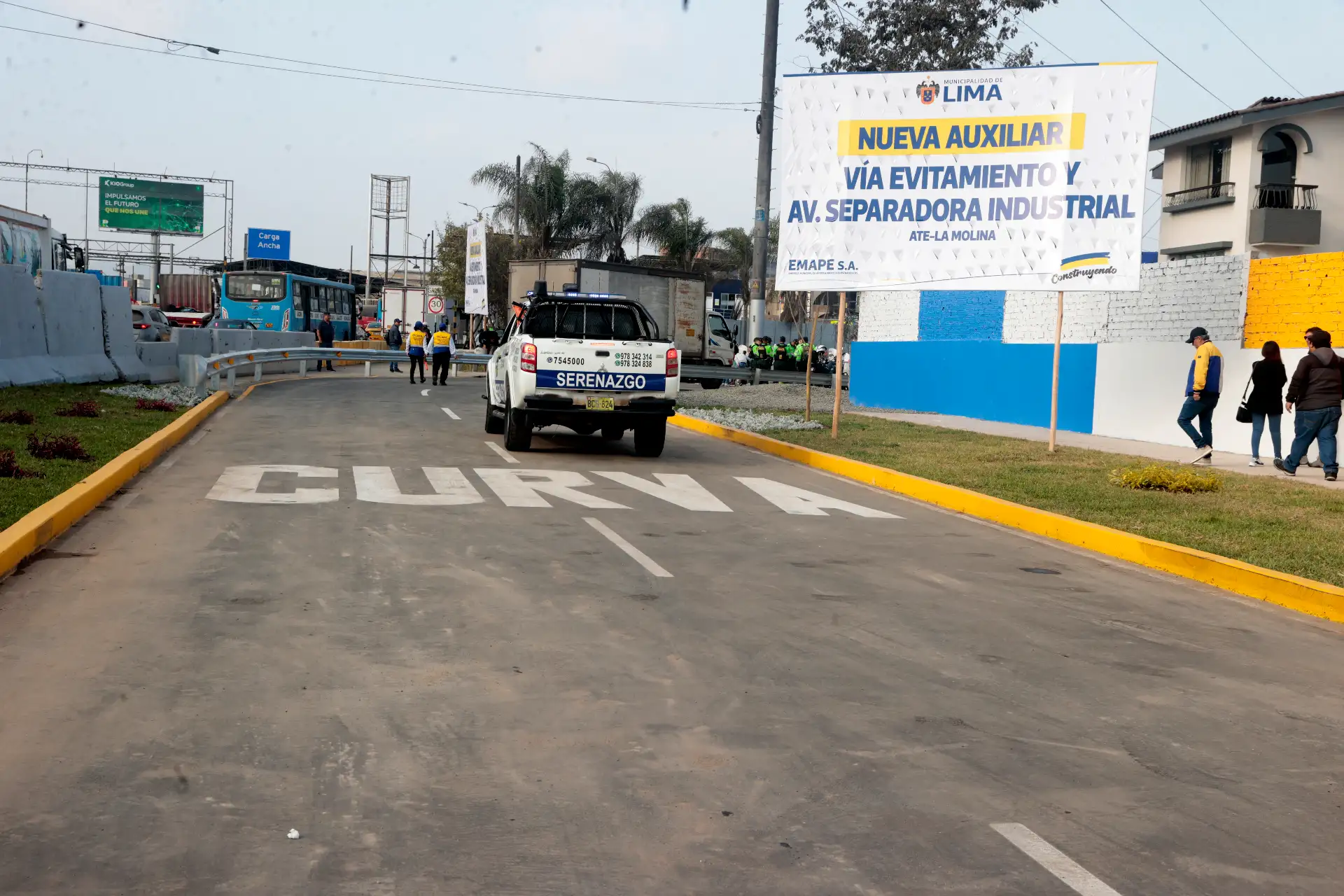 11/10/2025 Rafael López Aliaga, alcalde de Lima inaugura la nueva auxiliar de la vía evitamiento y Av. Separadora Industrial, haber liberado 22 000 m² de espacios públicos. A través de la Empresa Municipal de Apoyo a Proyectos Estratégicos (Emape).