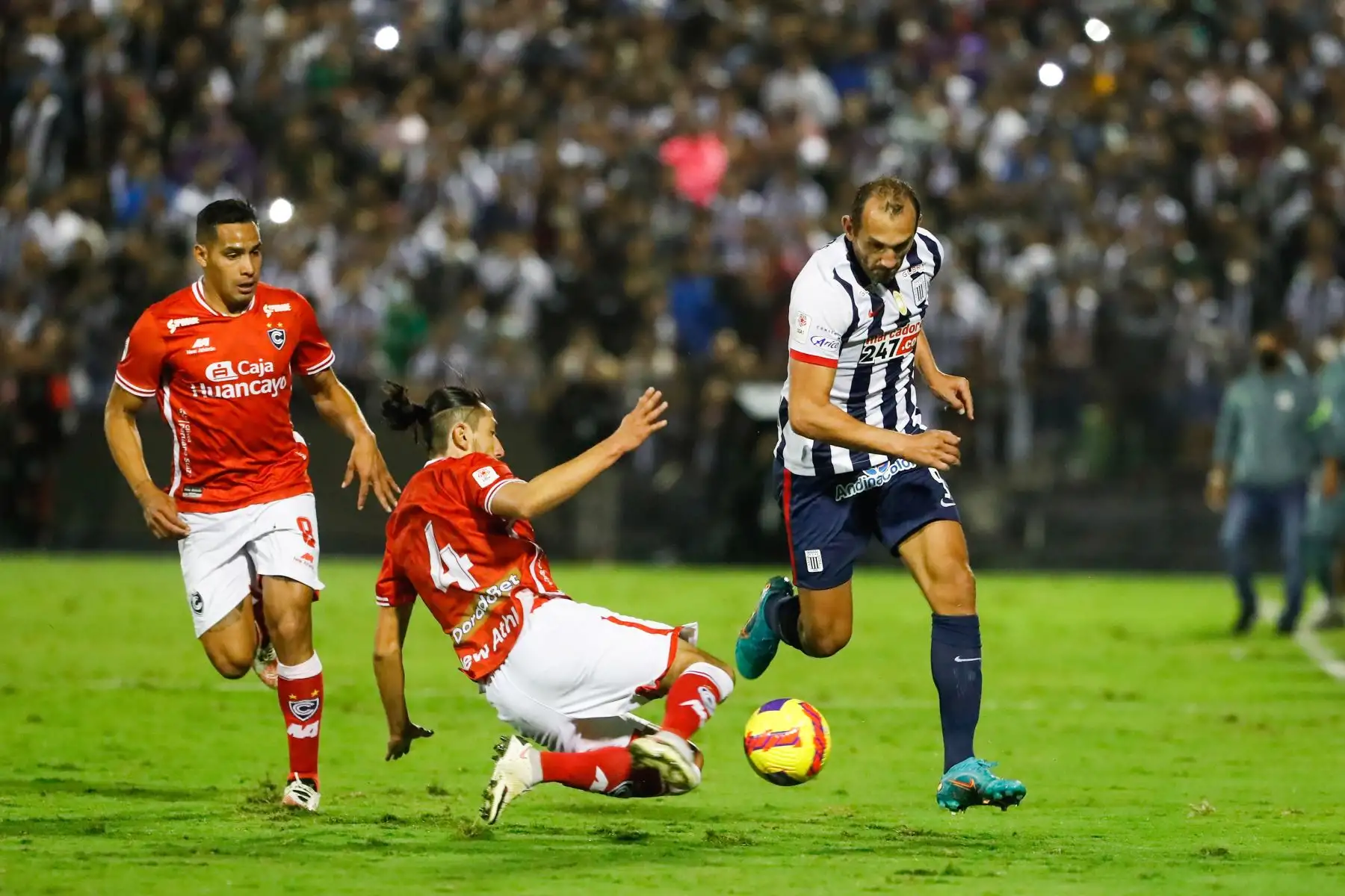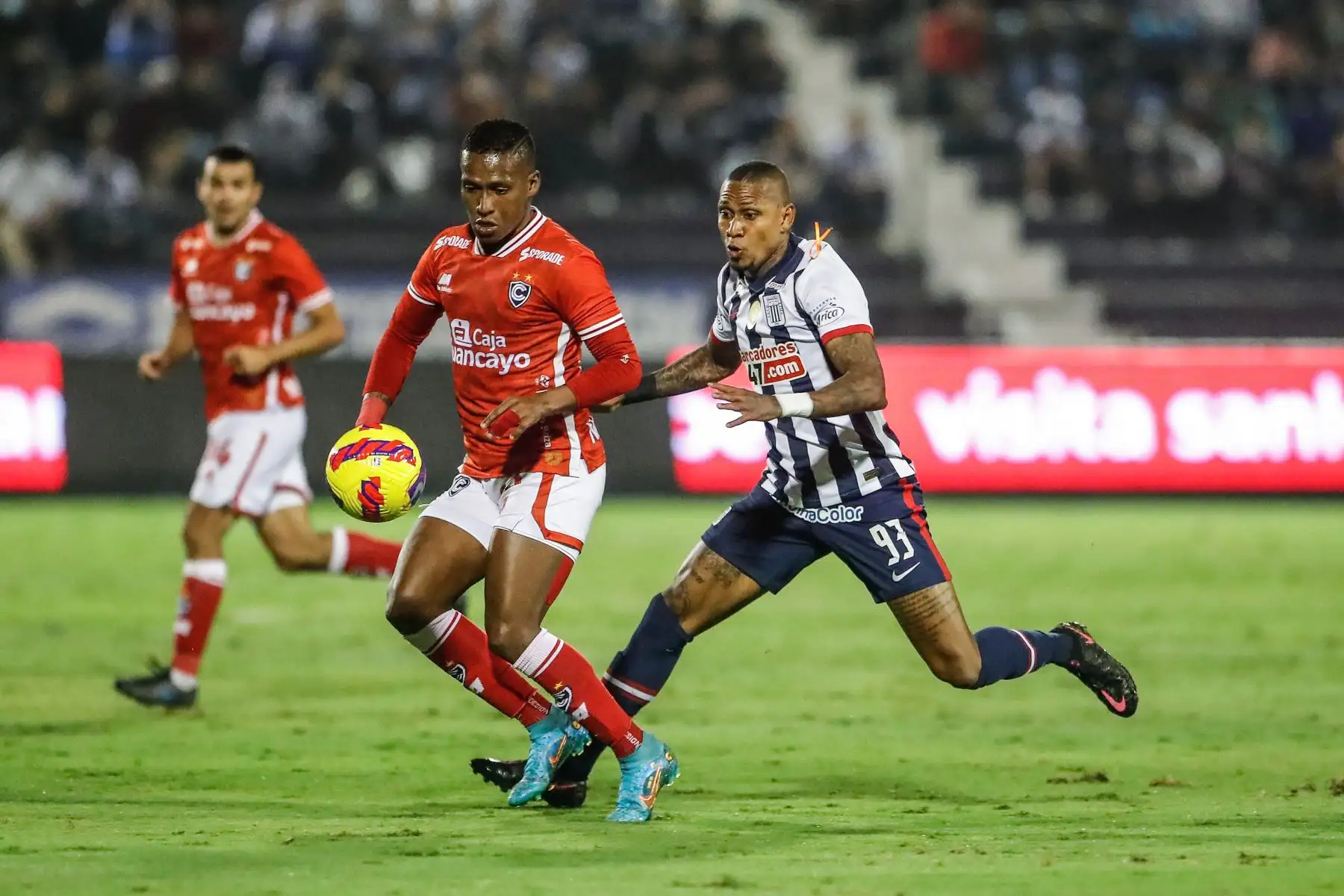 30/05/2022 Arley Rodríguez de Alianza Lima disputa el balón con su rival de Cienciano por la fecha 16 de la Liga 1, en el estadio Alejandro Villanueva.