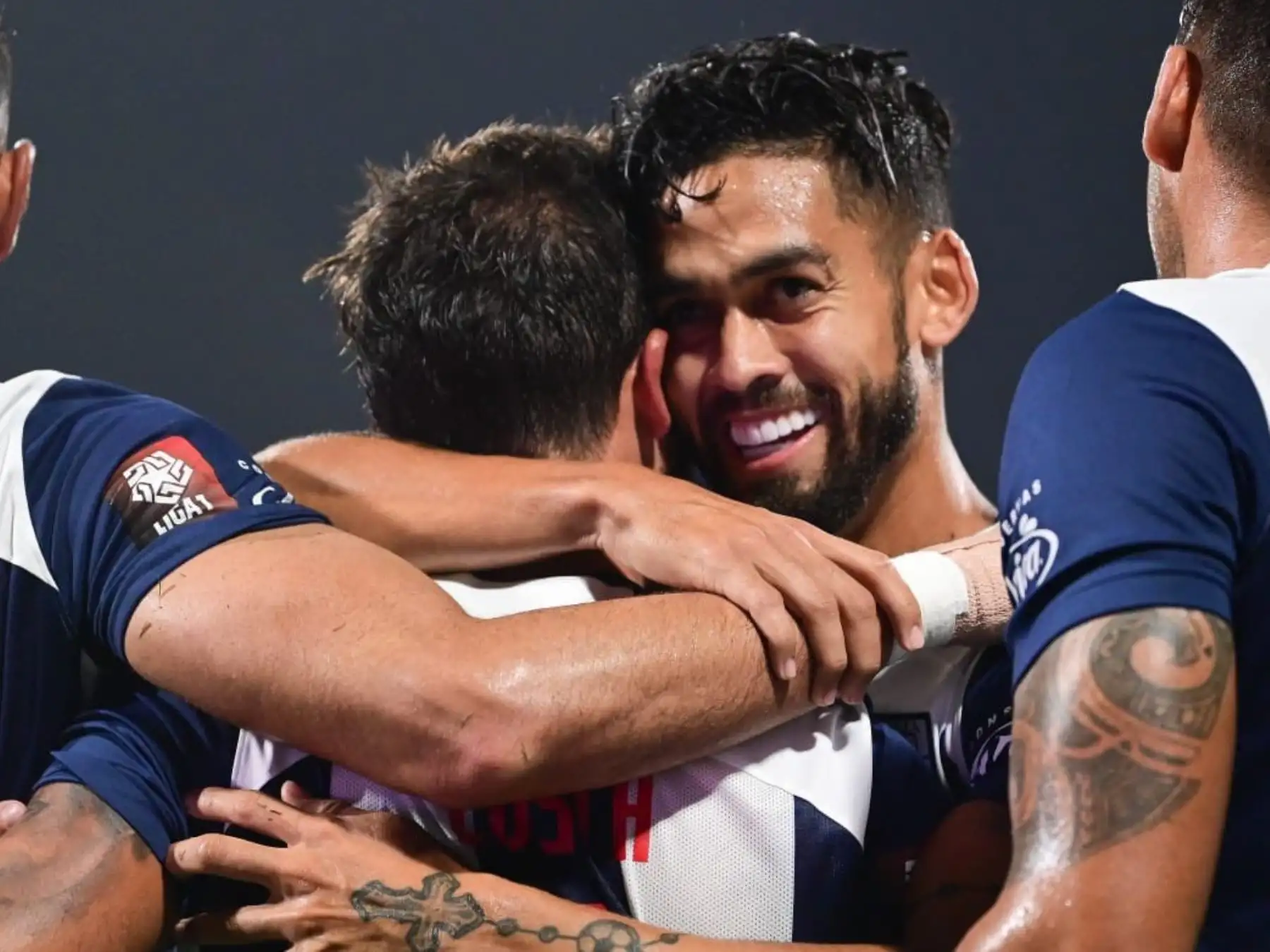 09/05/2023 Futbolistas de Alianza Lima, celebran el tercer tanto de Gabriel Costas ante Carlos Manucci de Trujillo. Foto: ANDINA/Liga1