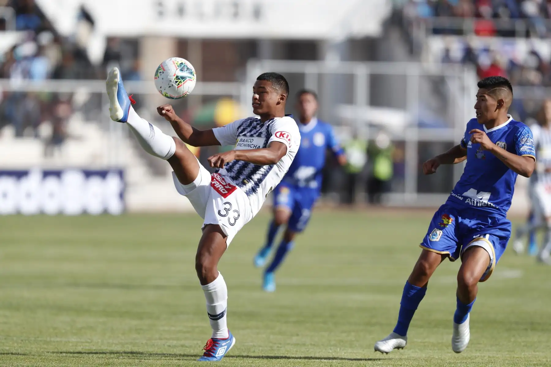 08/12/2019 Adrián Ugarriza de Alianza Lima disputa el balón ante el jugador del Binacional en el partido de ida en la final del fútbol peruano por la Liga 1, en la ciudad de Juliaca – Puno.