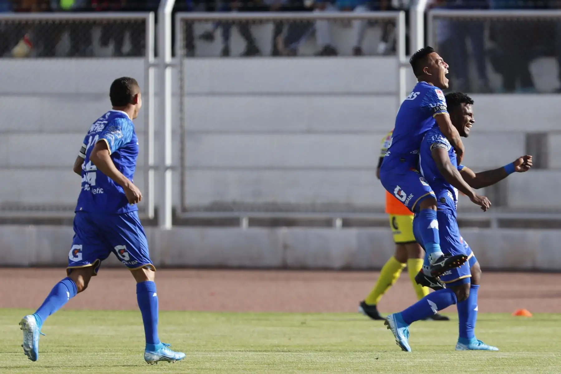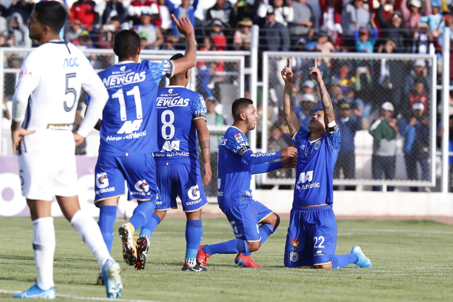 08/12/2019 Jugadores de Binacional celebran el gol ante Alianza Lima en el partido de ida en la final del fútbol peruano por la Liga 1, en la ciudad de Juliaca – Puno.