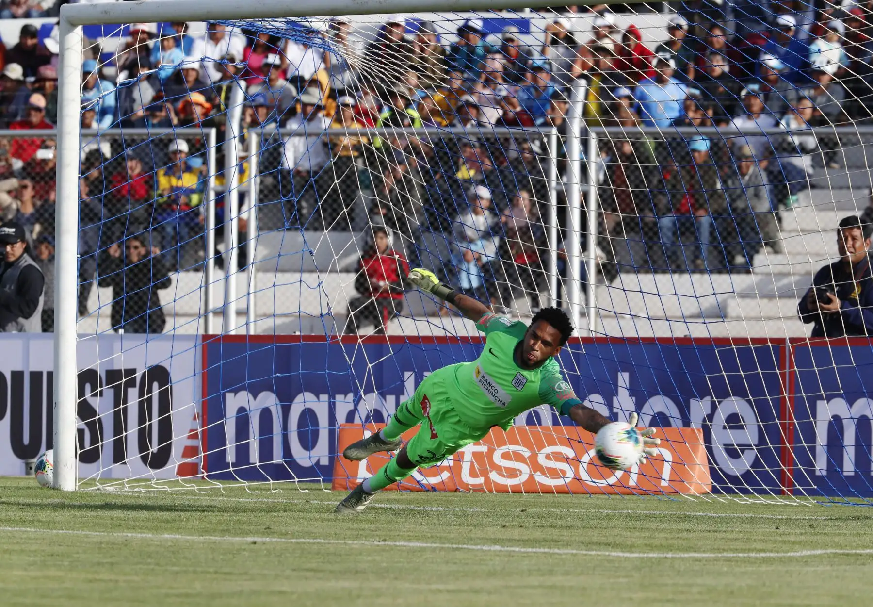 08/12/2019 Pedro Gallese de Alianza Lima no puede atajar el penal ejecutado por Binacional en el partido de ida en la final del fútbol peruano por la Liga 1, en la ciudad de Juliaca – Puno.