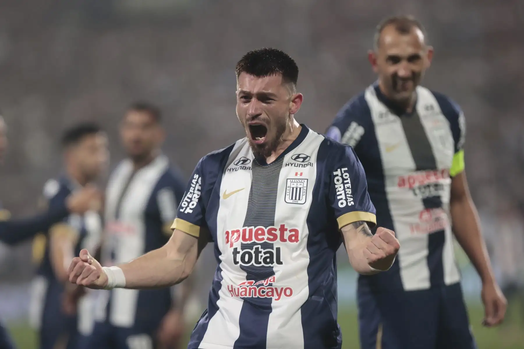 13/08/2025 Alan Cantero de Alianza Lima celebra el gol ante U. Católica de Ecuador en el partido de octavos de final por la Copa Sudamericana. Foto: ANDINA/Vidal Tarqui