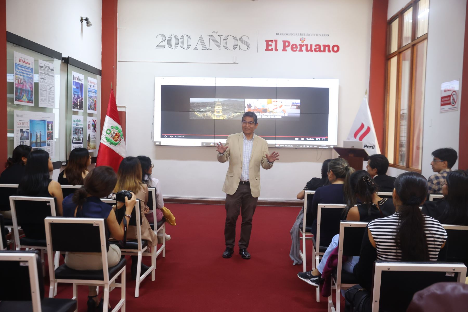 27/11/2025 Alumnos de la Universidad Santiago Antunes de Mayolo de Huaraz y la Universidad nacional de Ucayali visitan Editora Perú para conocer la experiencia Vive Andina. Foto: ANDINA/Melina Mejía