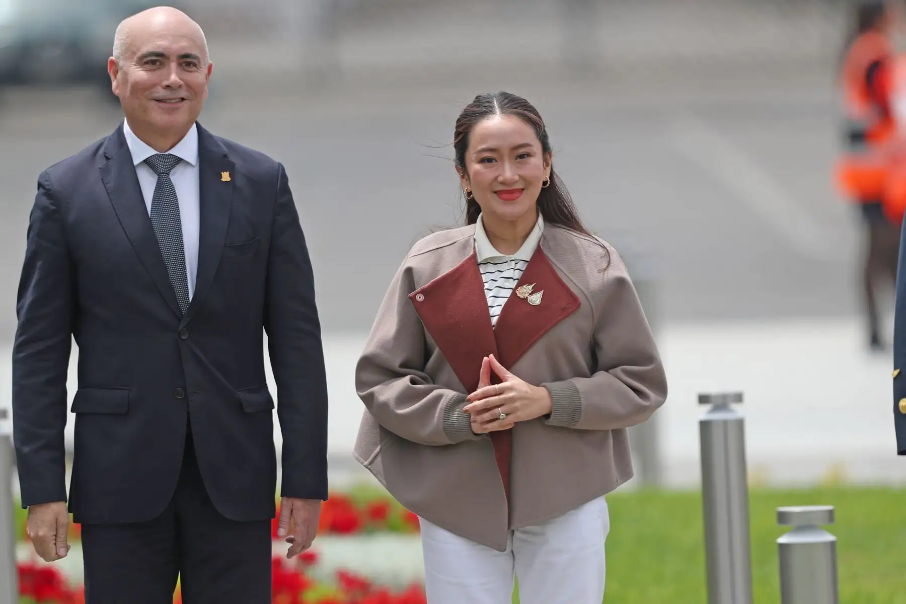 13/11/2024 La primera ministra de Tailandia y líder de la economía APEC, Paetongtarn Shinawatra, llegó al Grupo Aéreo N° 8, donde fue recibida por el ministro de Vivienda, Construcción y Saneamiento, Durich Whittembury. Foto: ANDINA/ Lino Chipana