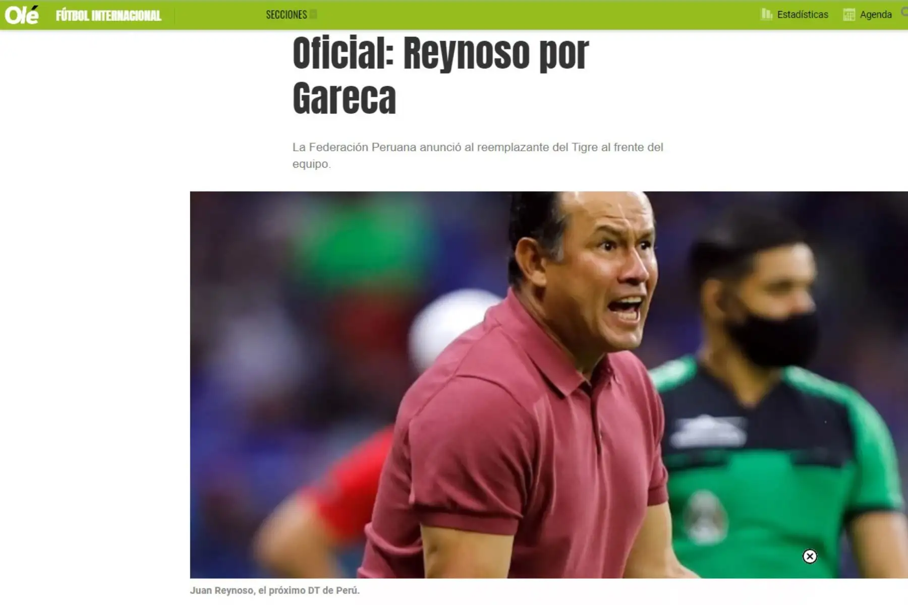 02/08/2022 Así informa la prensa nacional e internacional la oficialización de Juan Reynoso como técnico de la Selección Peruana. En la imagen , portada del diario Olé.