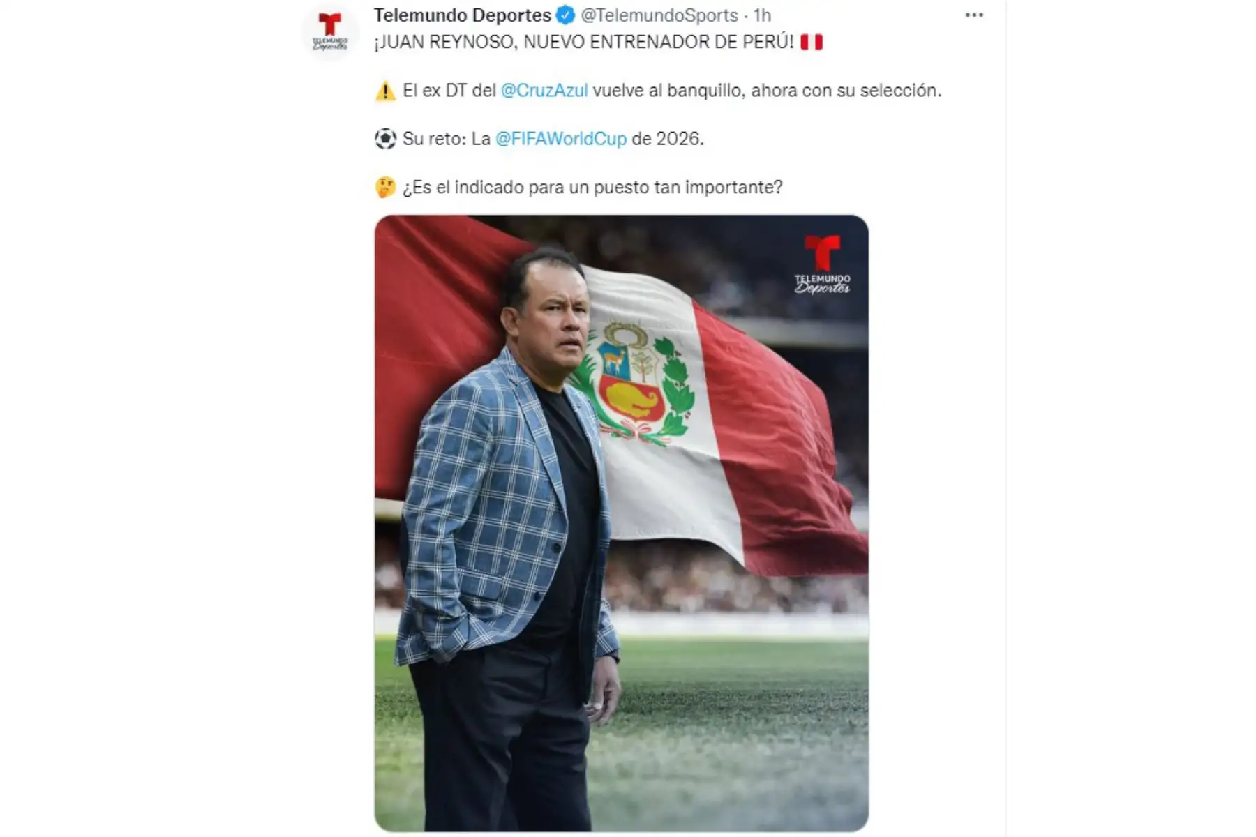 02/08/2022 Así informa la prensa nacional e internacional la oficialización de Juan Reynoso como técnico de la Selección Peruana. En la imagen , portada Telemundo.