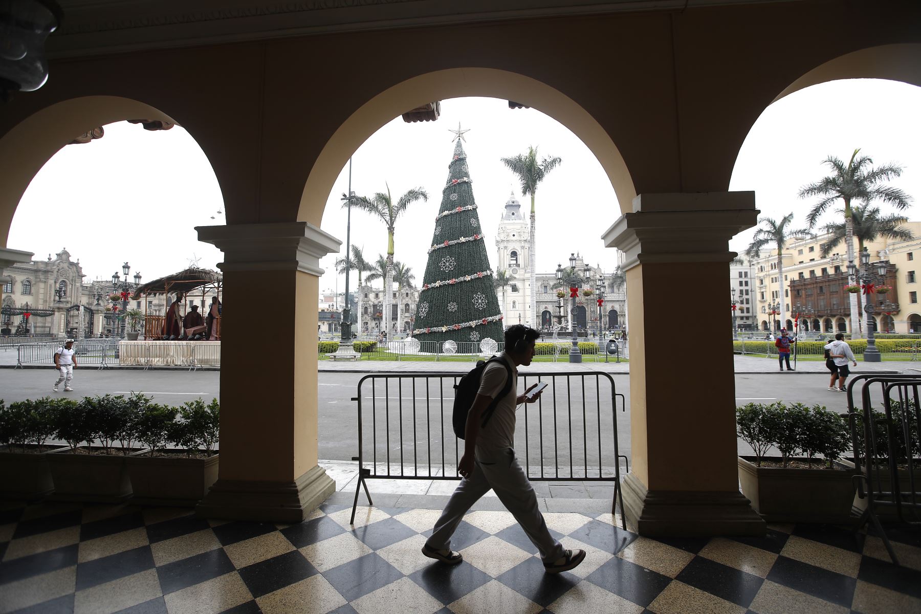 14/12/2025 El Centro Histórico de Lima luce con el tradicional árbol navideño previo a la Nochebuena el 25 de diciembre.