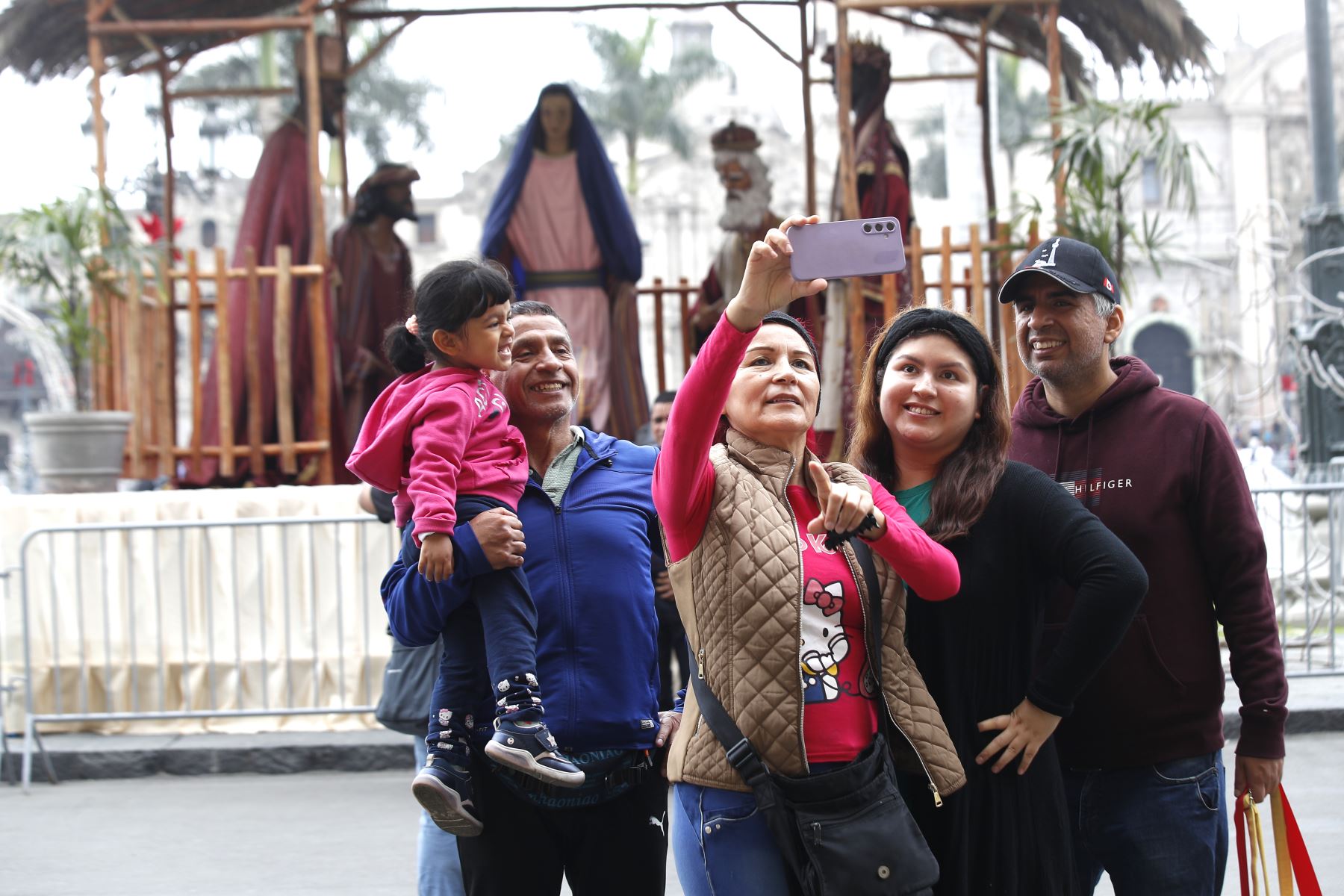 14/12/2025 Así luce el tradicional nacimiento navideño, ubicado en la Plaza de Armas del Centro Histórico de lLima. Decenas de familias acuden para tomar fotos y pasar momentos de tranquilidad en el fin de semana.