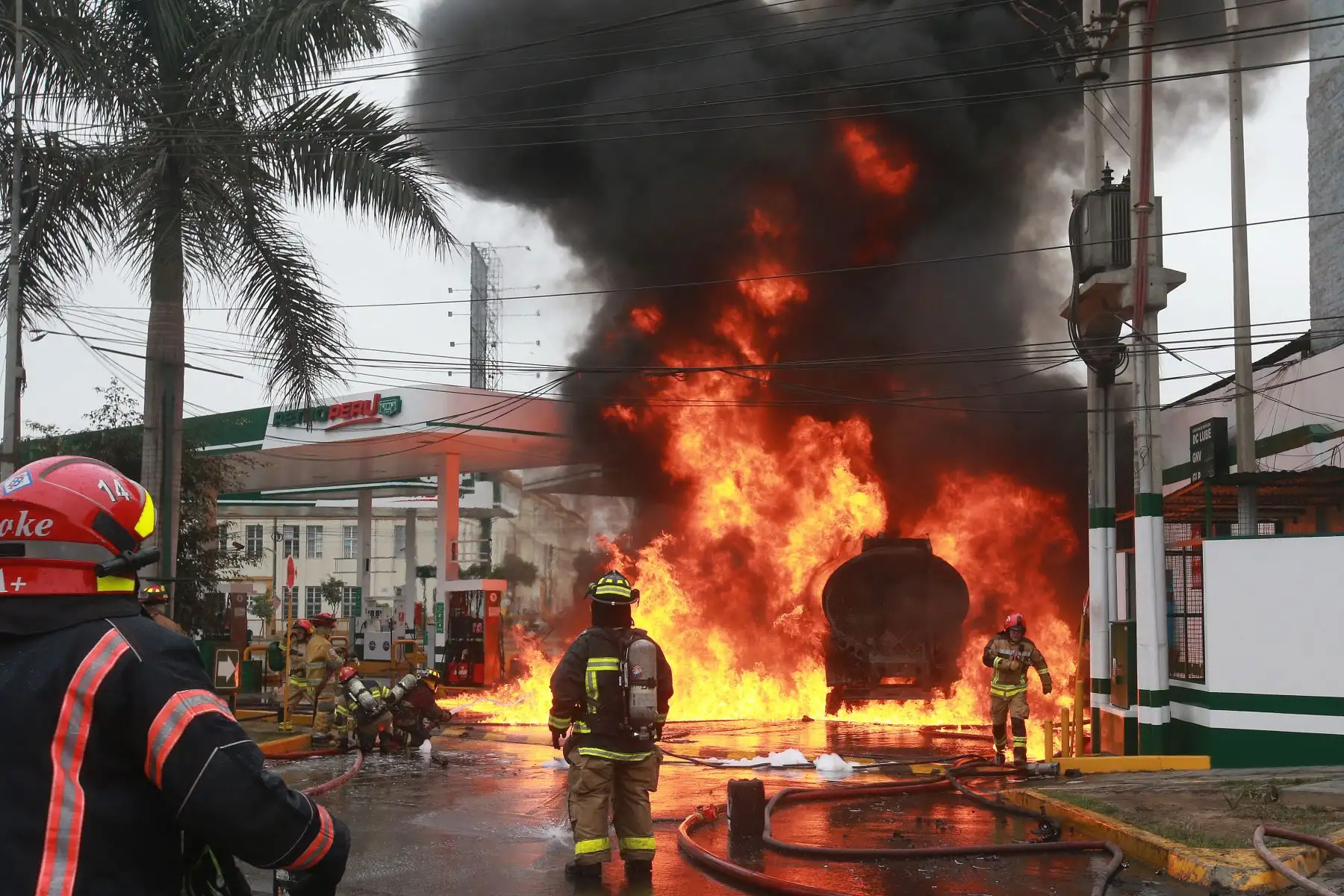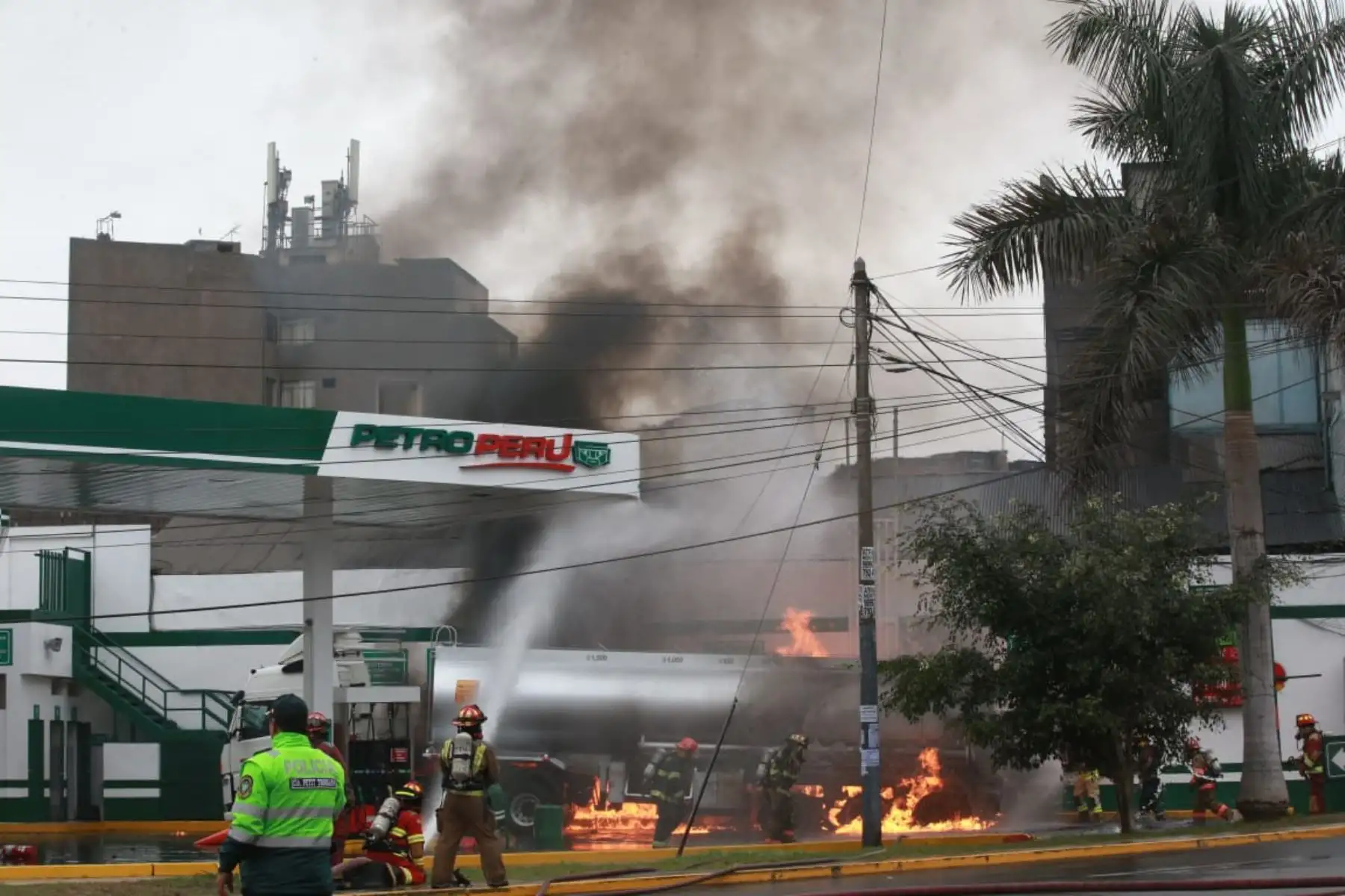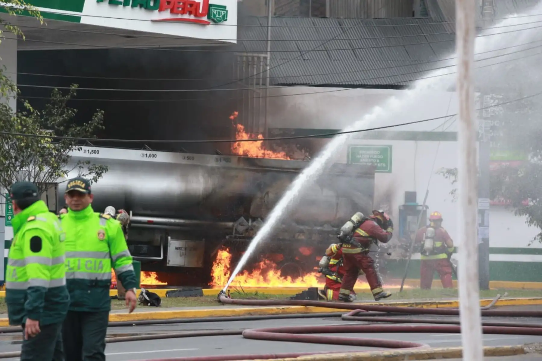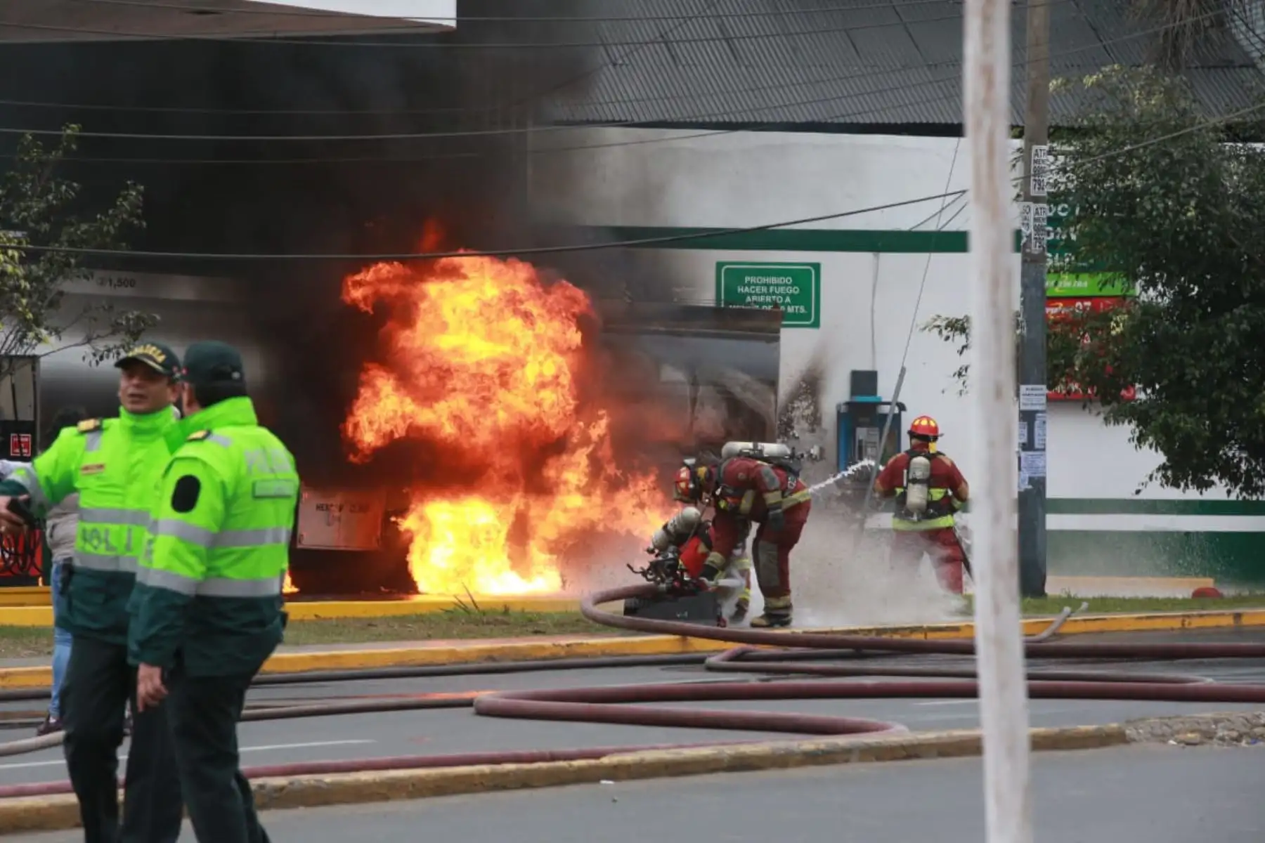 Auto y cisterna se incendian en grifo ubicado frente a hospital del Niño