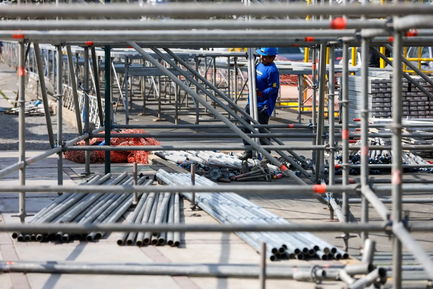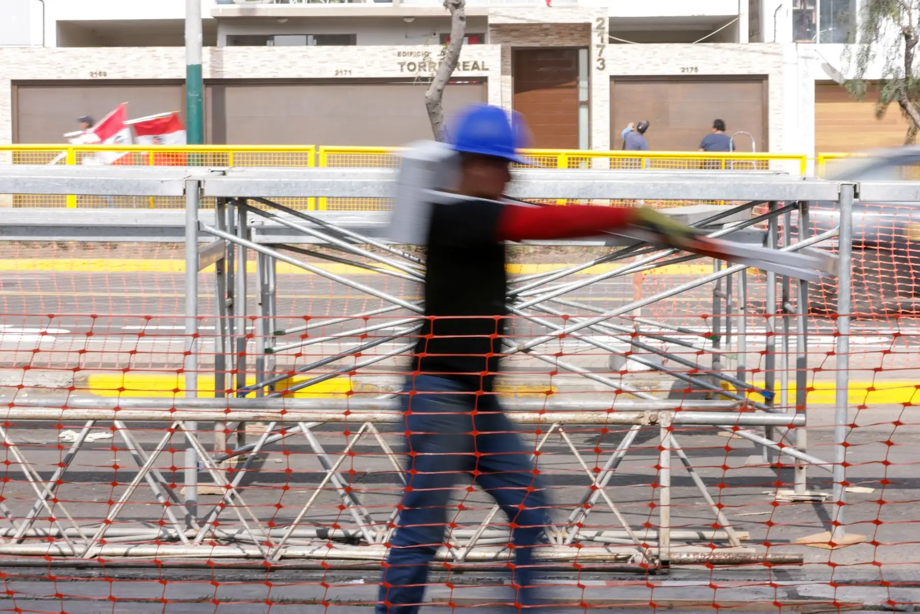 16/07/2024 Trabajadores realizan obras de armado de tribunas a la altura del óvalo de la Av. Brasil, en Jesús Maria, a menos de dos semanas de realizarse el Desfile Militar por Fiestas Patrias. Foto: ANDINA/Daniel Bracamonte