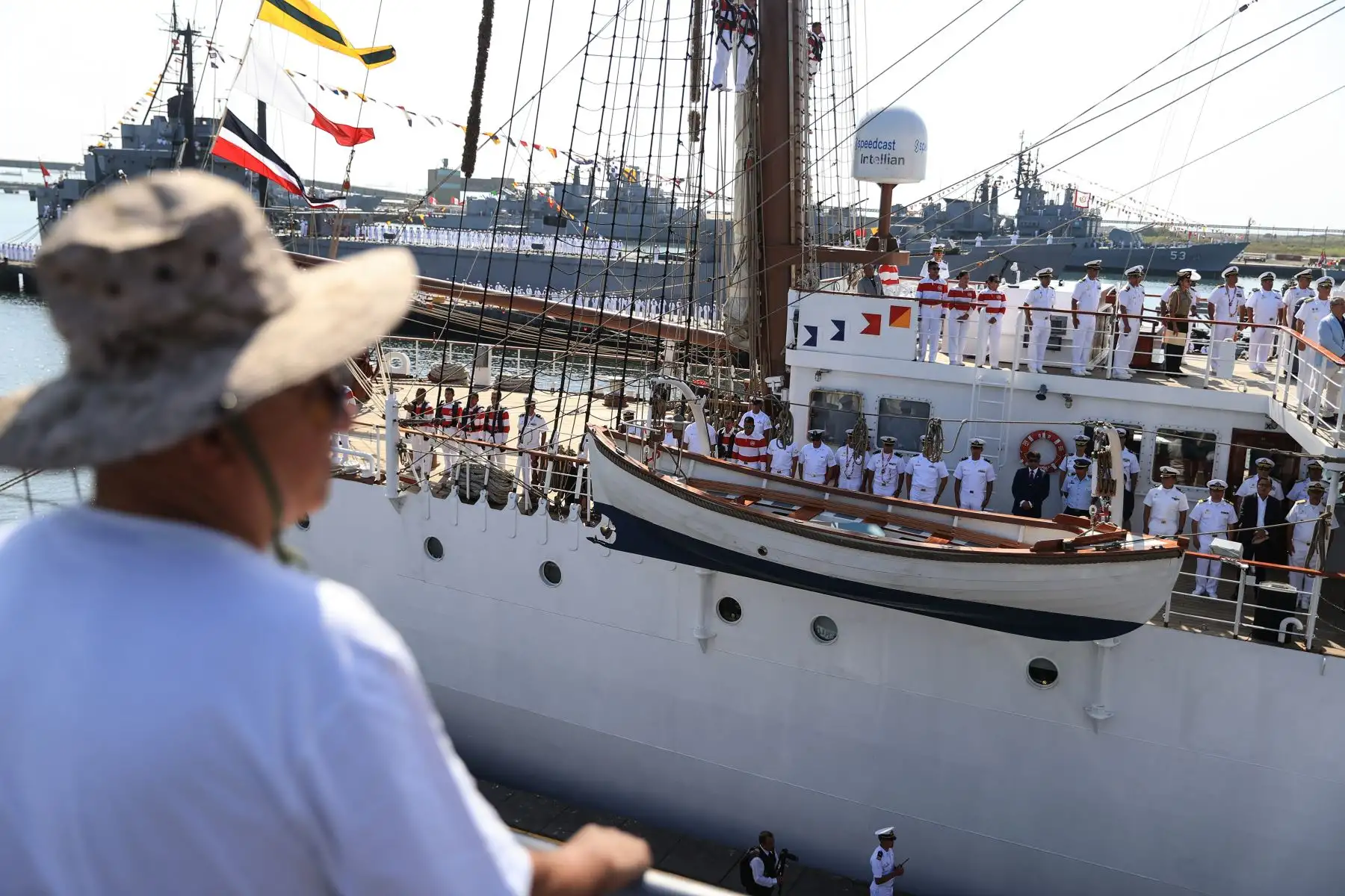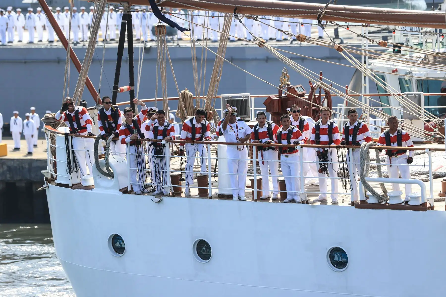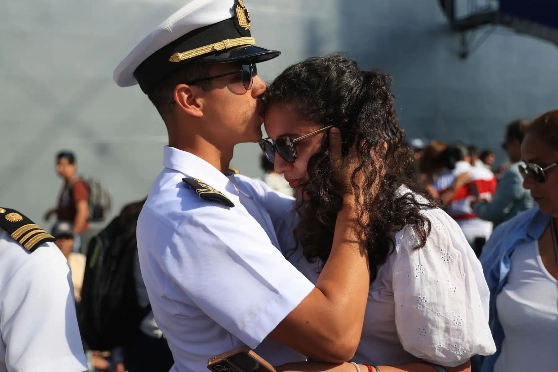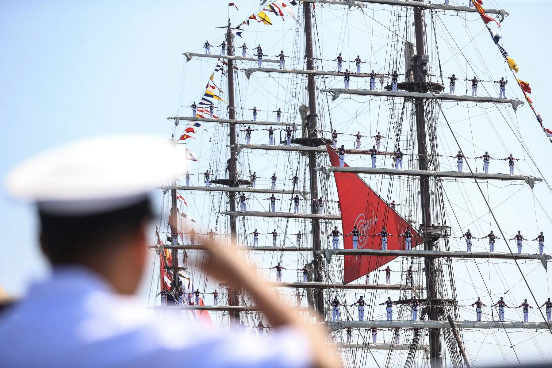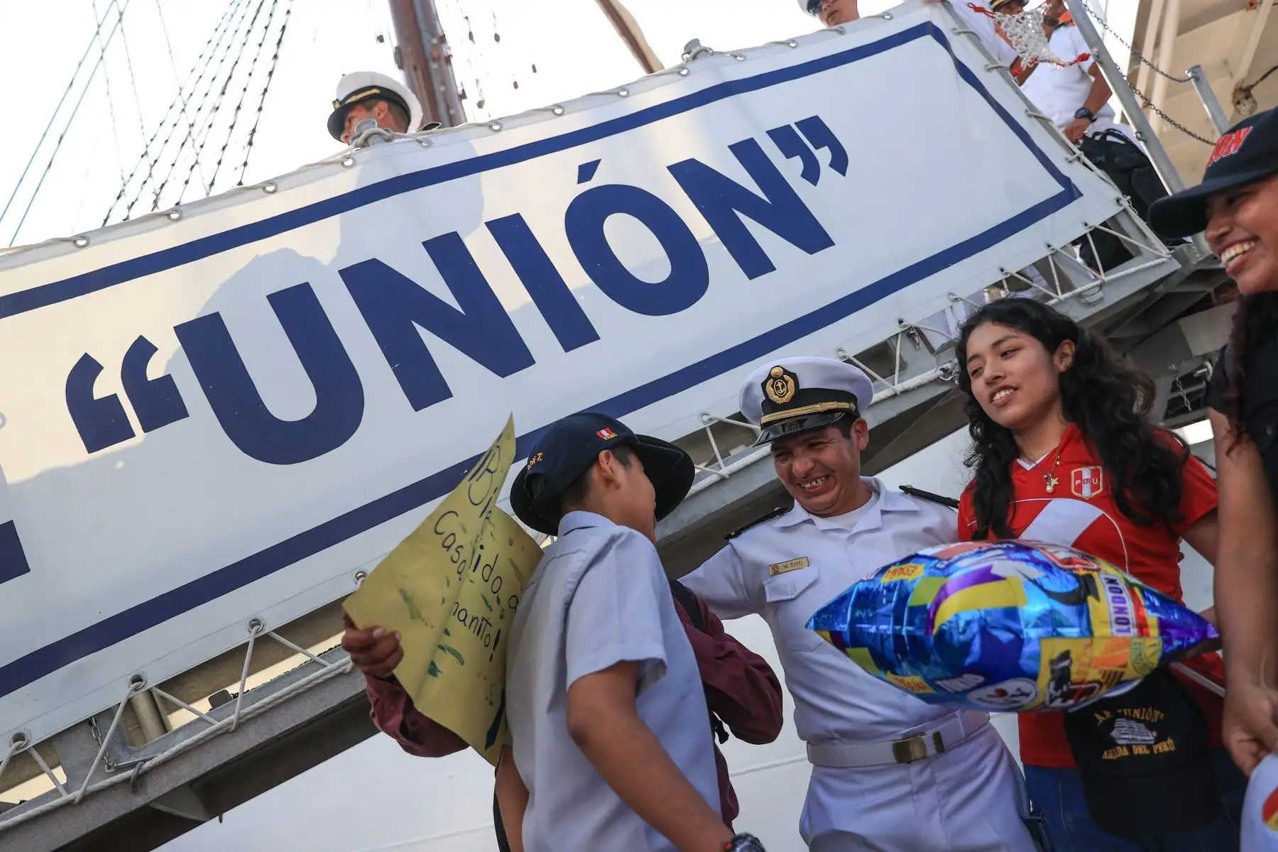 28/04/2024 Autoridades y familiares dieron la bienvenida a nuestro emblemático buque escuela a vela B.A.P. Unión, que retorna triunfante a territorio nacional, tras su viaje alrededor del mundo, que lo llevó a recorrer 5 continentes y visitar 21 puertos de 15 países y 2 puertos del norte peruano, en 317 días, llevando lo mejor de nuestra cultura a otras naciones. Foto: ANDINA/Jhonel Rodríguez Robles