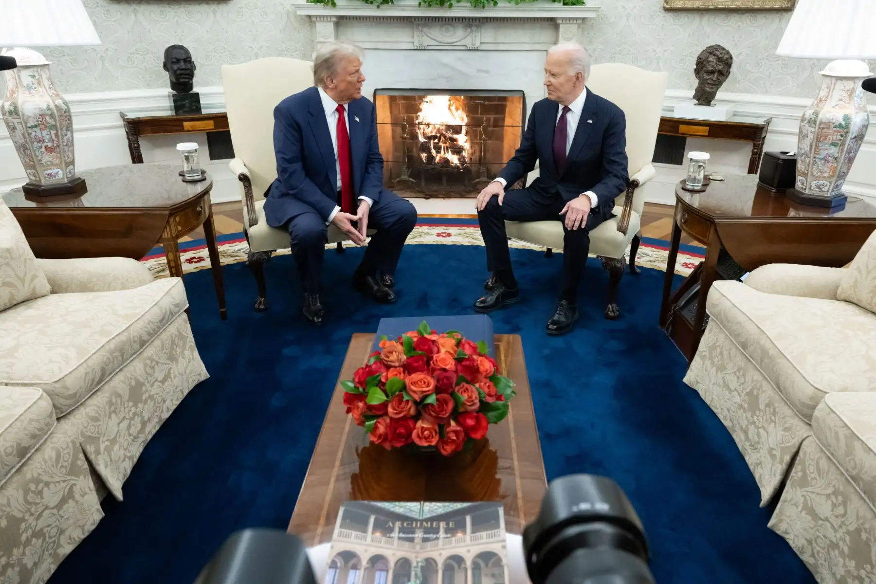 13/11/2024 Los dos hombres se sentaron junto a la chimenea e hicieron breves declaraciones antes de comenzar la reunión, a la que asistieron sus respectivos jefes de gabinete: Jeff Zients por Joe Biden, Susie Wiles por Donald Trump. Foto: AFP