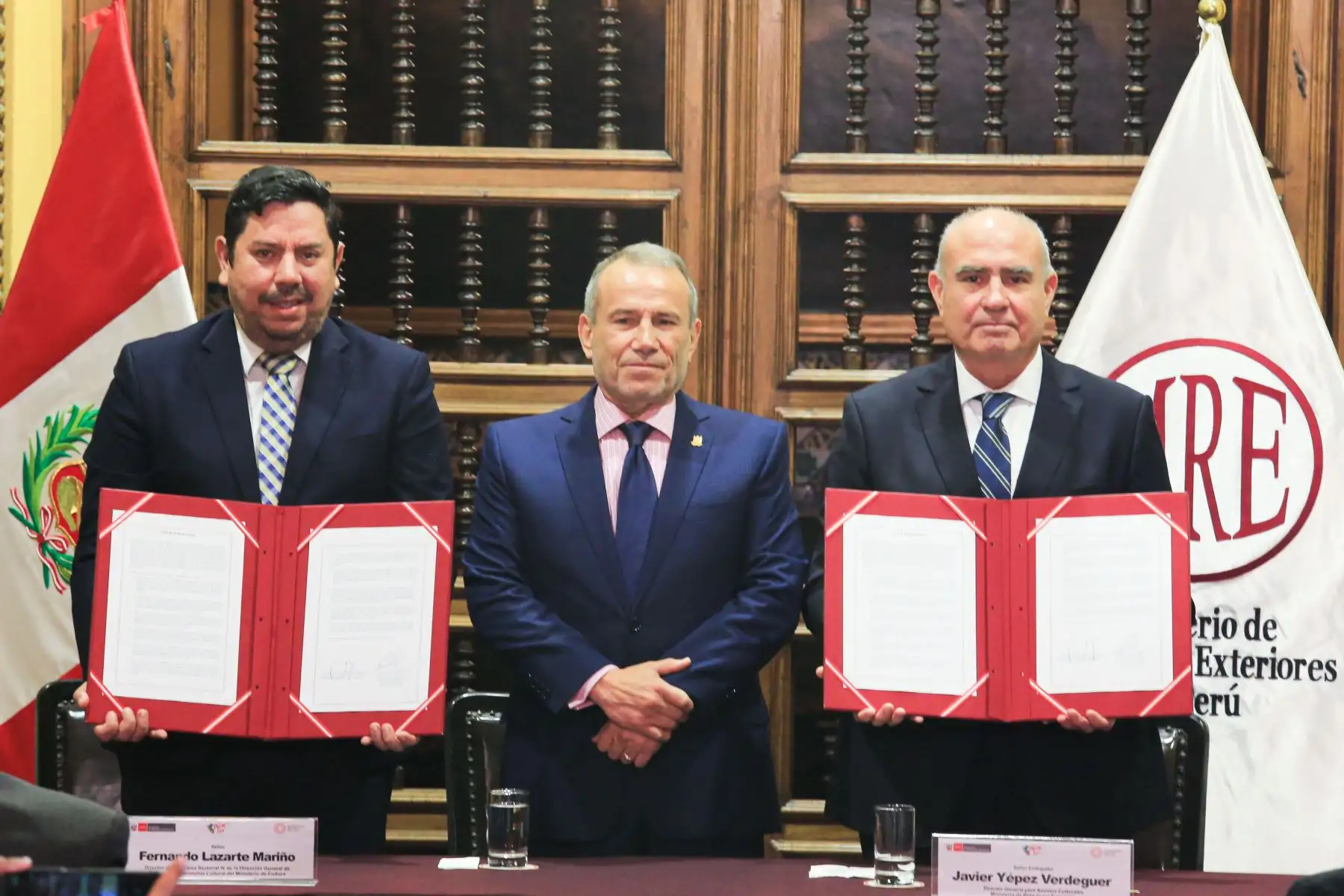 28/11/2024 El Canciller Elmer Schialer durante la ceremonia de entrega de bienes repatriados. nFoto: ANDINA/Héctor Vinces