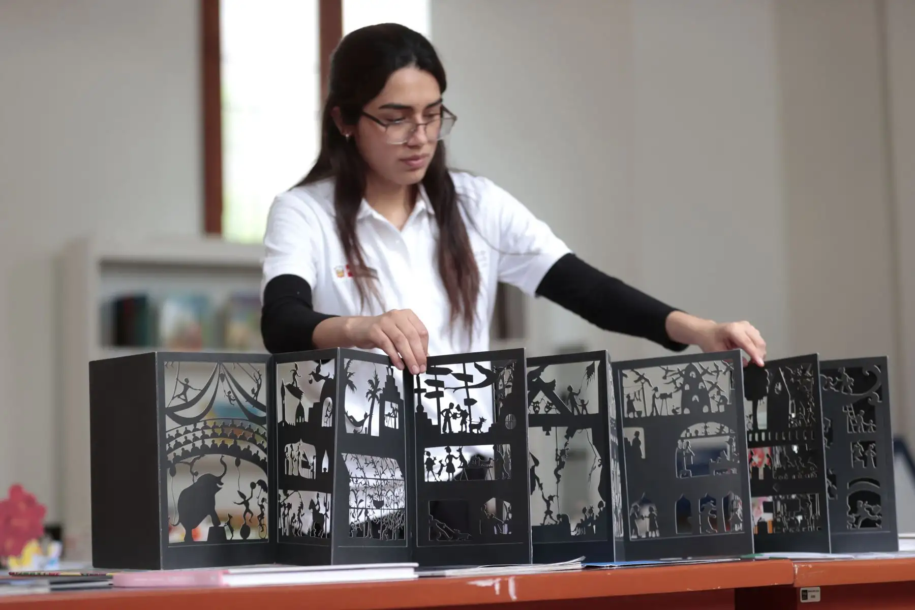 14/12/2024 En la Sala de Mediateca se llevó a cabo la exposición “En el mundo de los libros”, donde se apreciaron obras en 3D (tridimensionales). Luego, en el Hall Principal, se realizó la mediación de lectura “La magia de la Navidad: cuentos para compartir”, donde se conoció más sobre esta importante fecha. Foto: ANDINA/ Vidal Tarqui