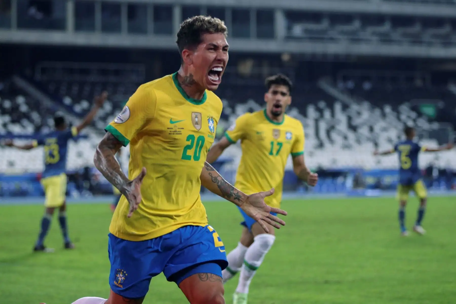 24/06/2021 Roberto Firmino de Brasil celebra un gol ante Colombia, durante un partido por el Grupo B de la Copa América en el Estadio Olímpico Nilton Santos de Río de Janeiro.