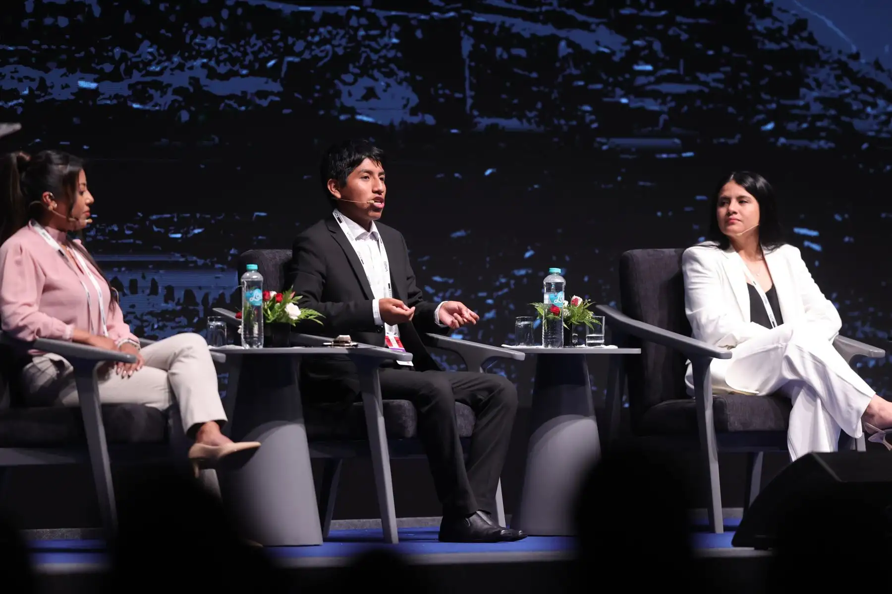 05/11/2025 Jhosely Condori, embajadora de la Comunidad de Jóvenes Líderes de IPAE; Miguel Olarte, miembro de la Comunidad de Jóvenes Líderes de IPAE; y Estefani Paima, embajadora de la Comunidad de Jóvenes Líderes de IPAE.