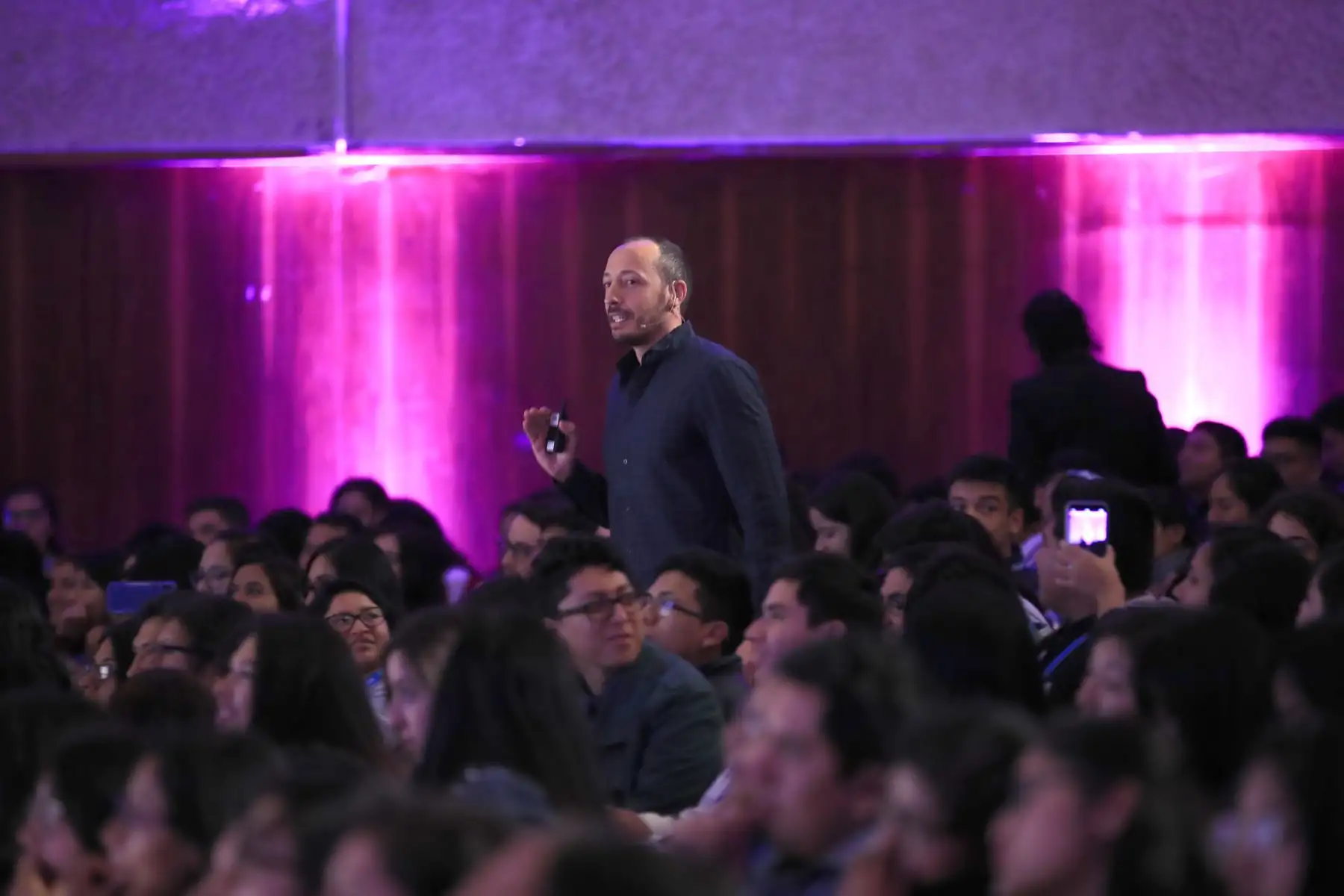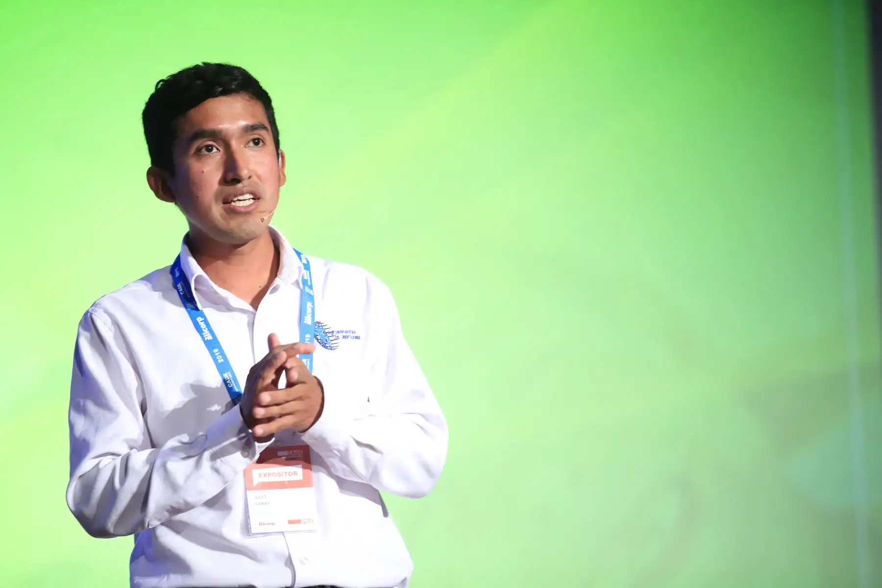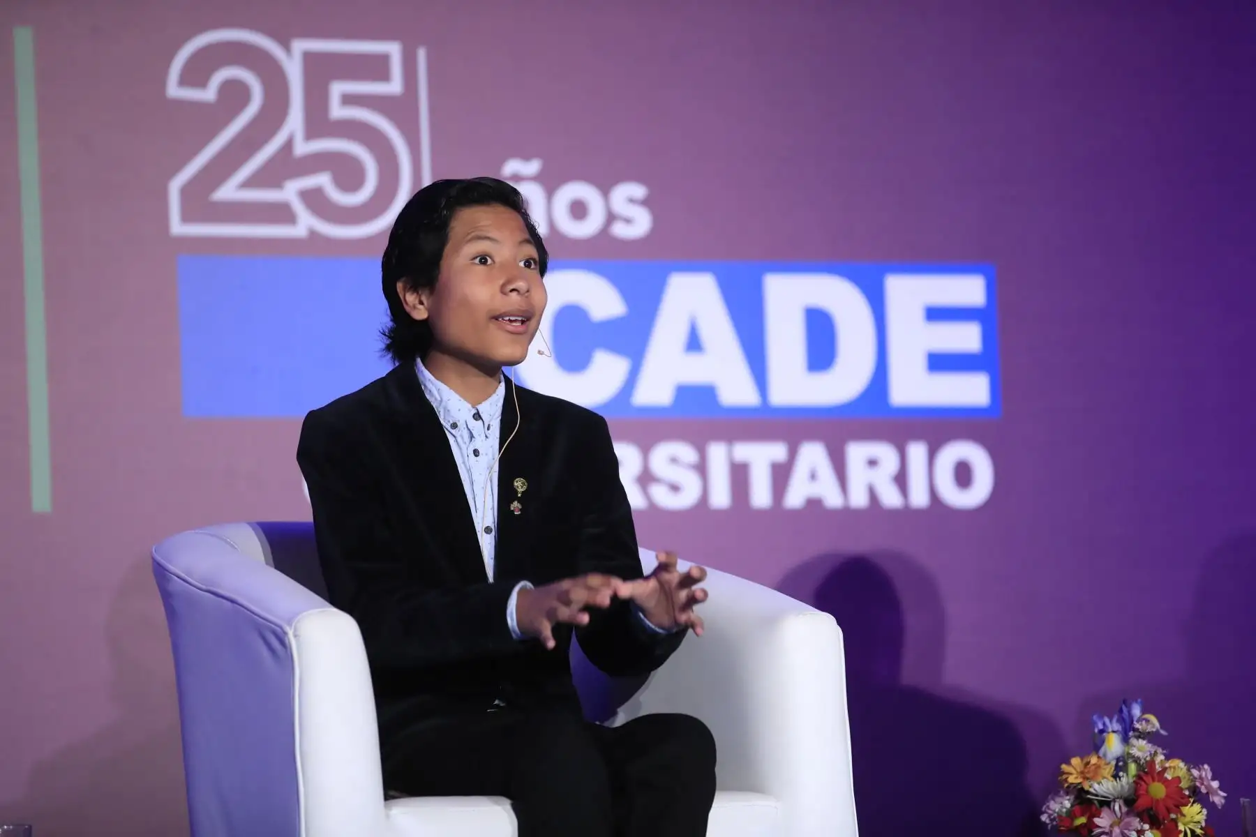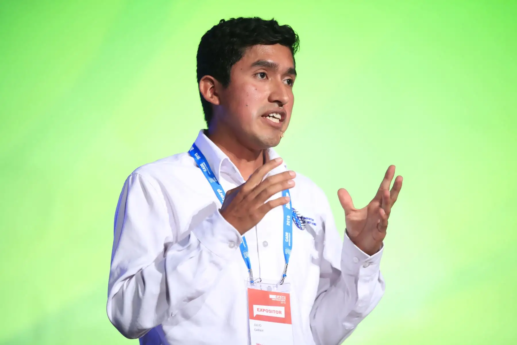 José Quisocala, fundador del Banco del Estudiante Bartselana durante su exposición en el Cade Universitario 2019.
