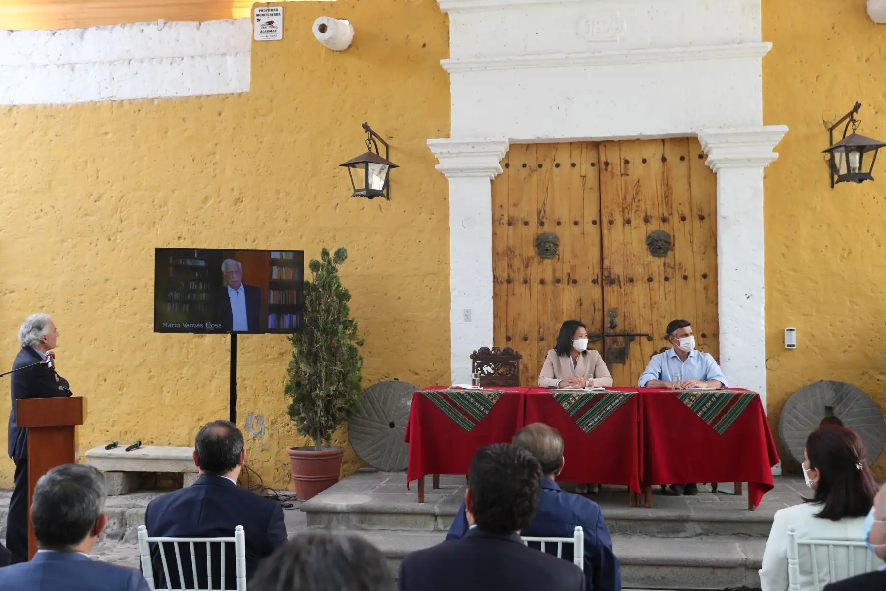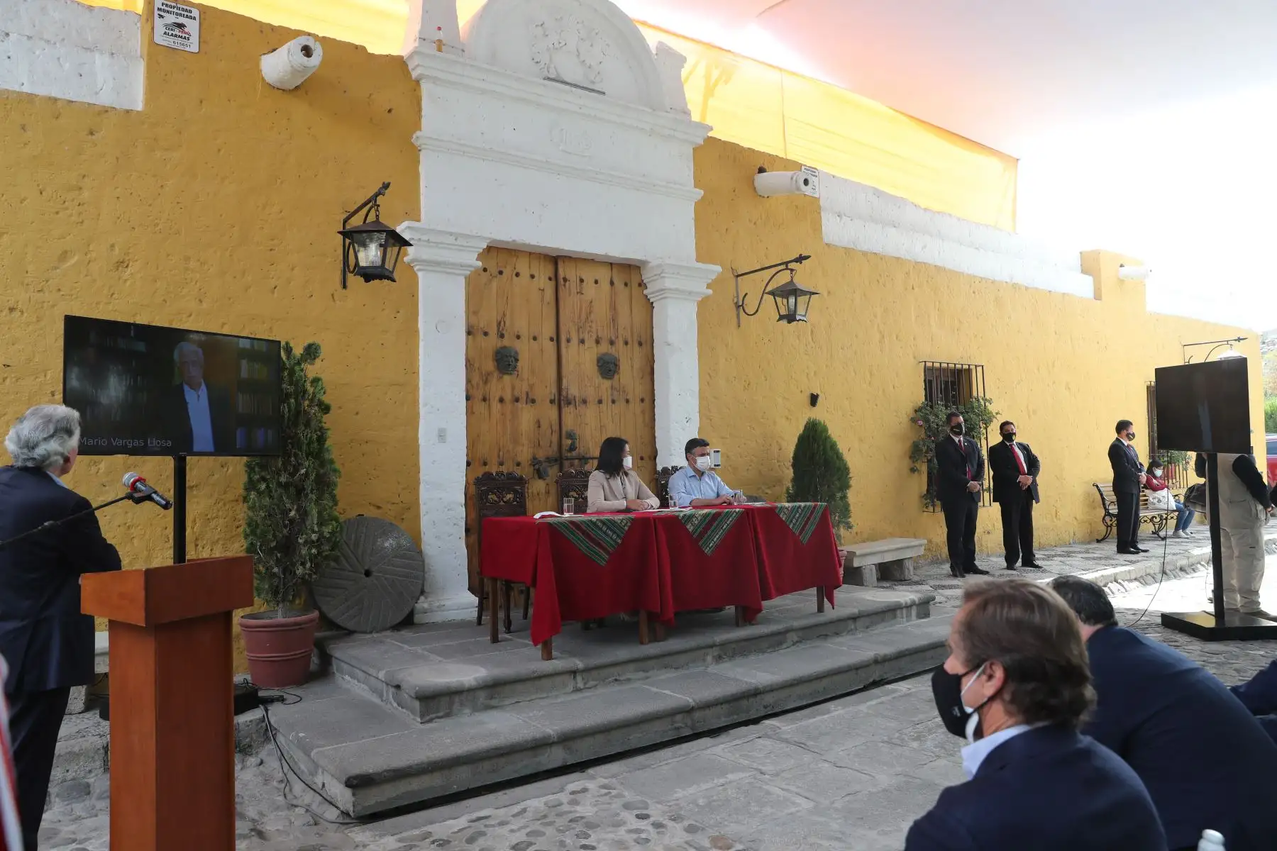 31/05/2021 Mario Vargas Llosa participa de forma virtual en la firma del 'Juramento por la democracia' de la candidata Keiko Fujimori, en Arequipa. Foto: ANDINA/Andrés Valle
