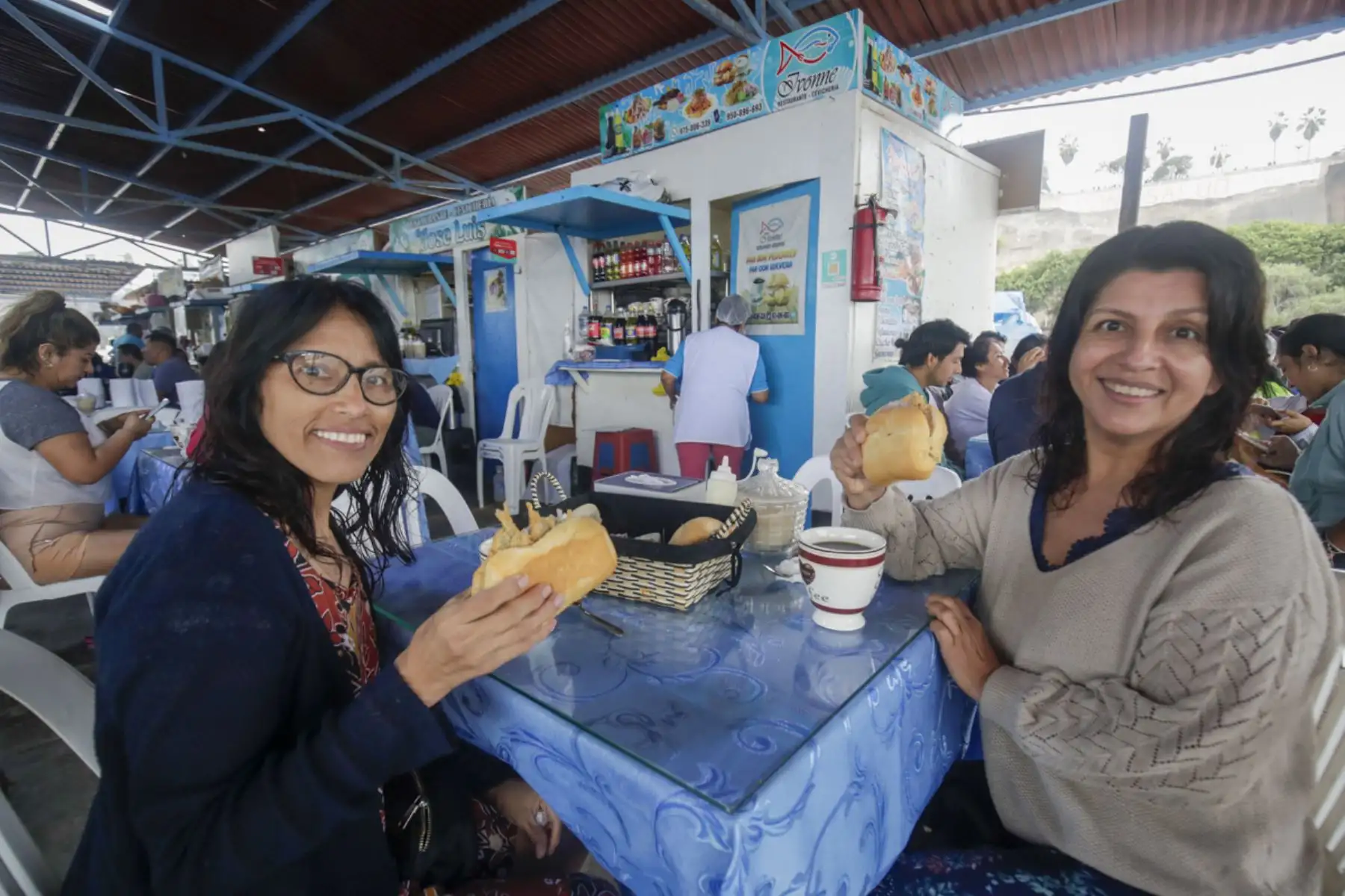 29/06/2023 En el marco del Día del Pescador y el Día de San Pedro y San Pablo, decenas de personas acudieron al muelle de Chorrillos para degustar el famoso pan con pejerrey y otros platos marinos.