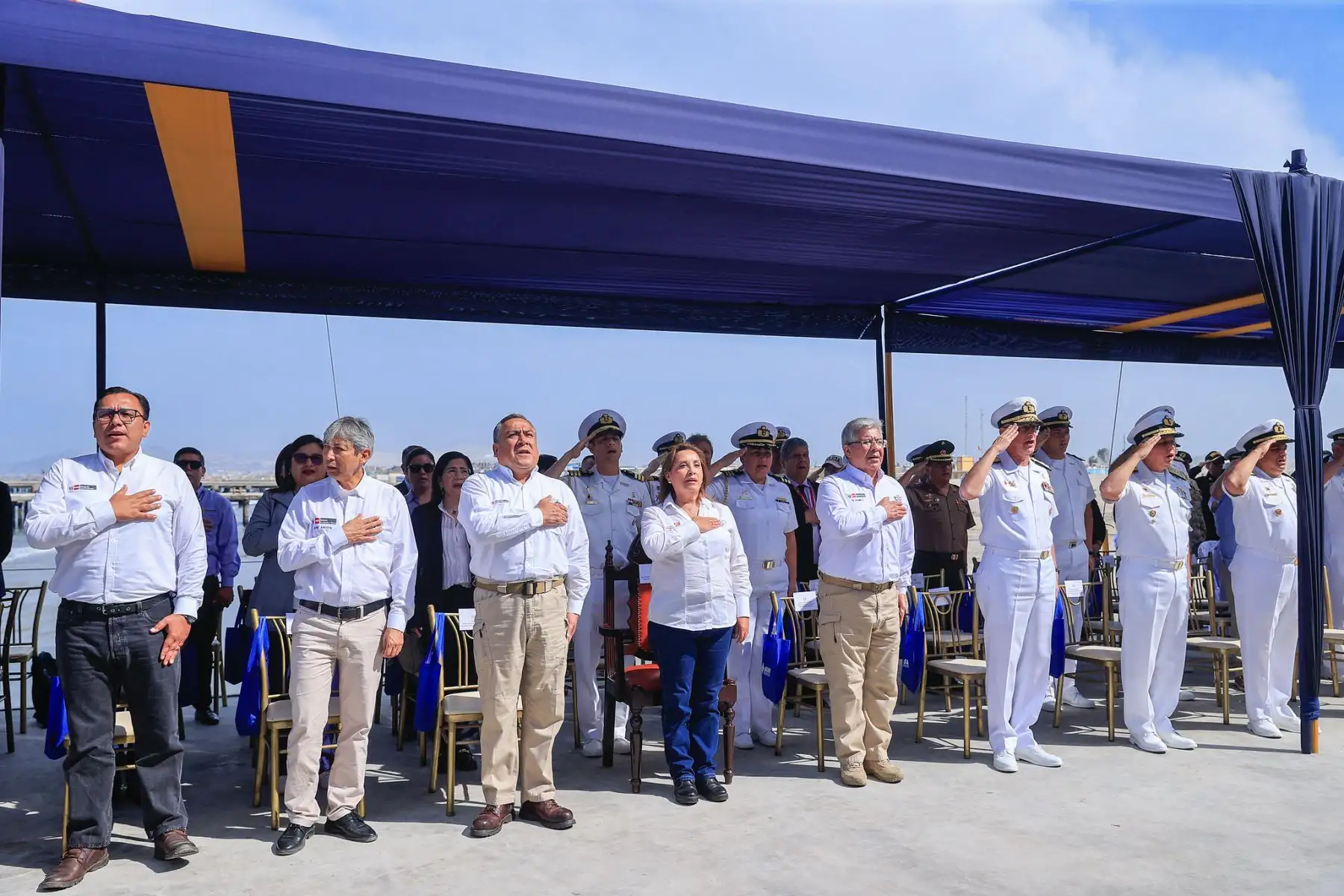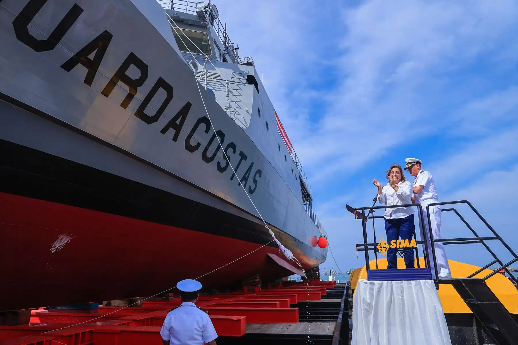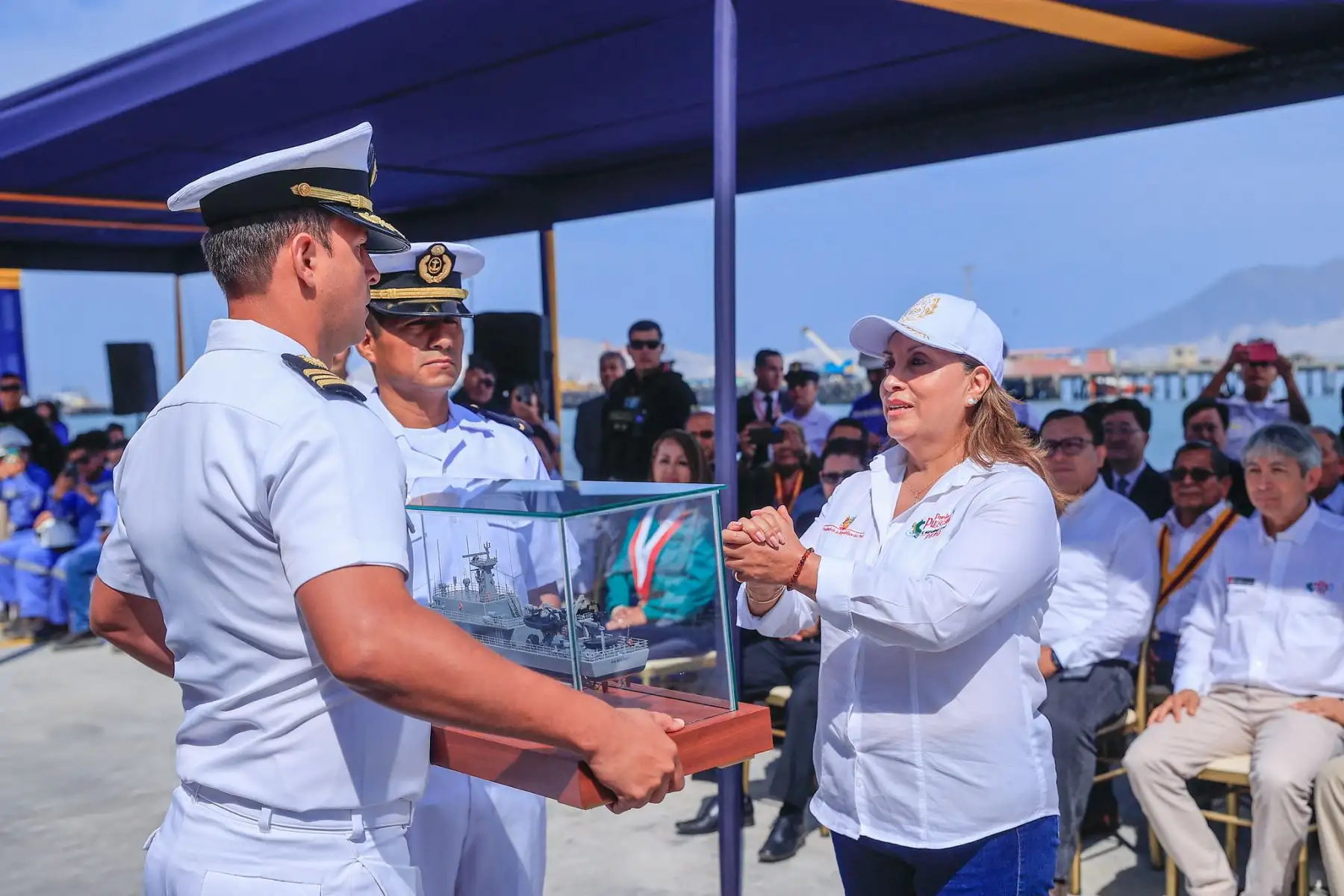10/01/2025 Presidenta Dina Ercilia Boluarte, en la ceremonia de bautizo y botadura de las patrullas marítimas B.A.P. “Río Huarmey” y B.A.P. “Río Nepeña” en la región Áncash. Foto: ANDINA/Prensa Presidencia