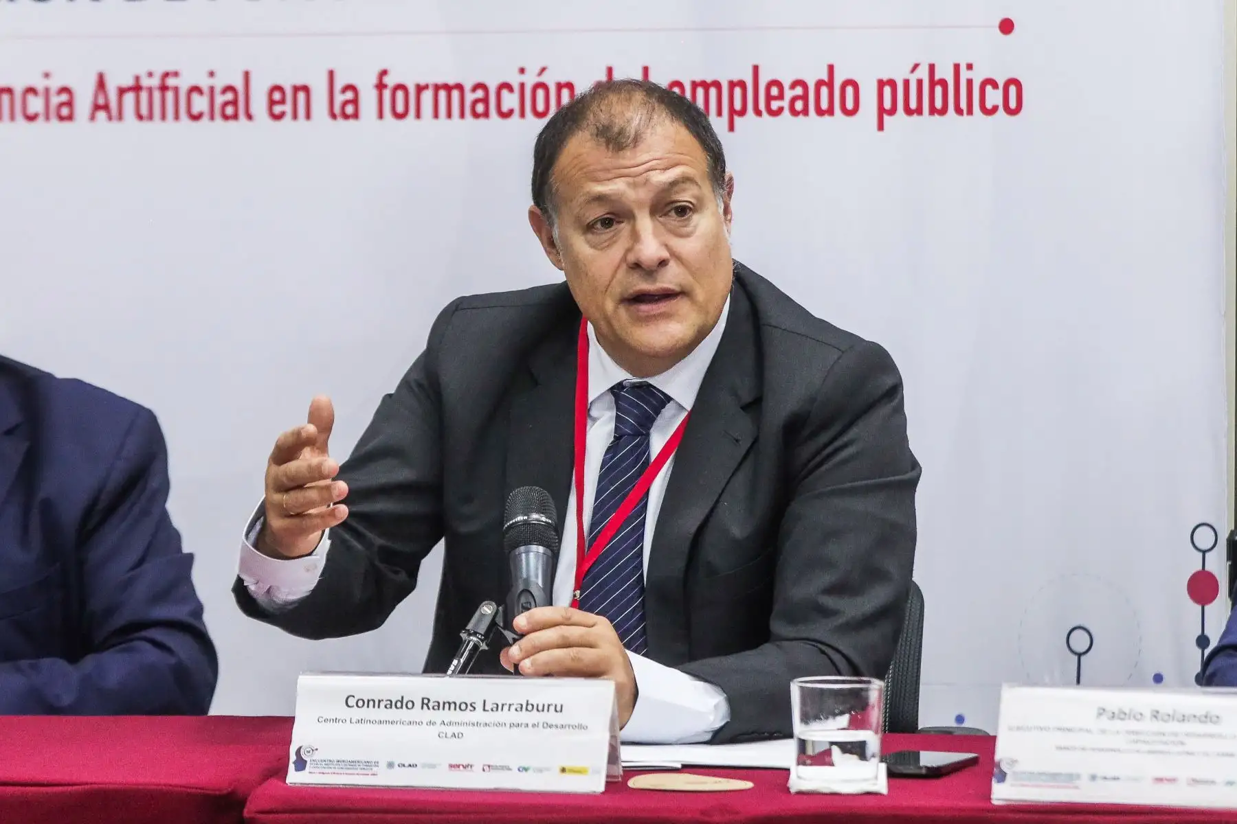 03/10/2024 Conrado Ramos Larraburu, secretario general del Centro Latinoamericano de Administración para el Desarrollo (CLAD) brinda unas palabras durante la ceremonia de inauguración. Foto: ANDINA/ Connie Calderon