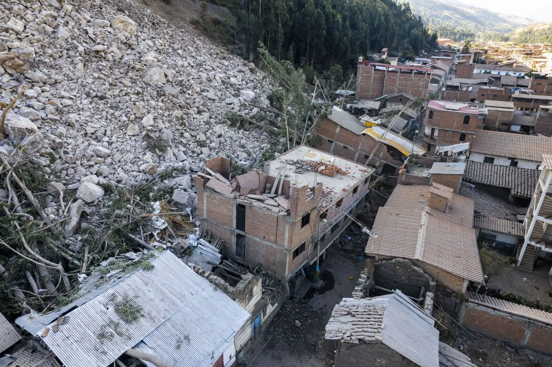 02/07/2022 Fotos aéreas del deslizamiento en el sector Cruz de Shallapa, en el distrito de Chavín de Huántar, provincia de Huari, región Áncash.