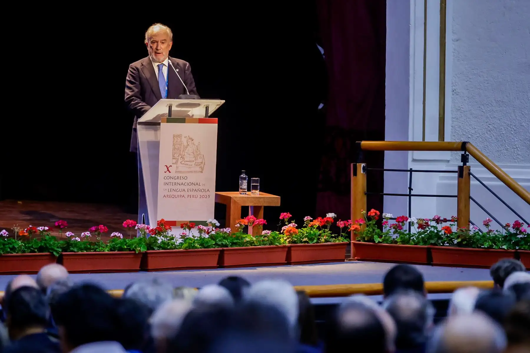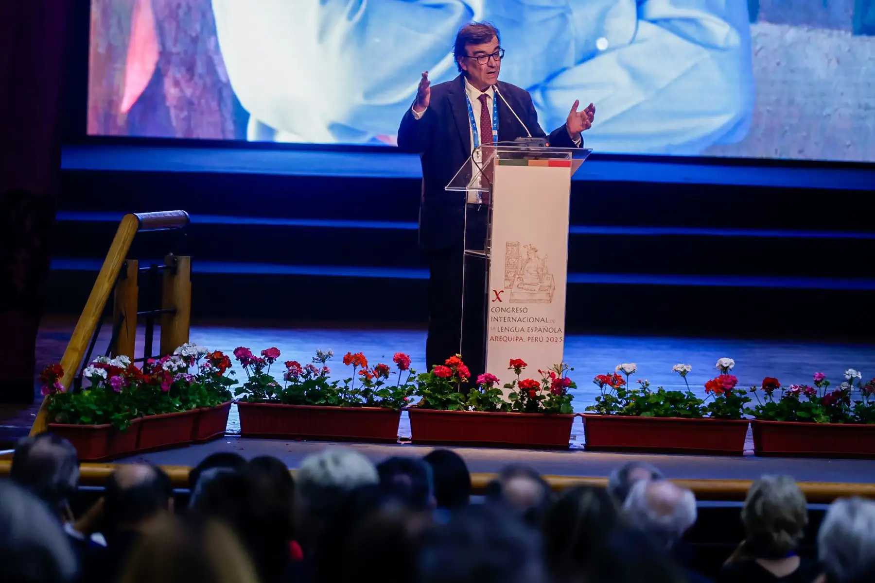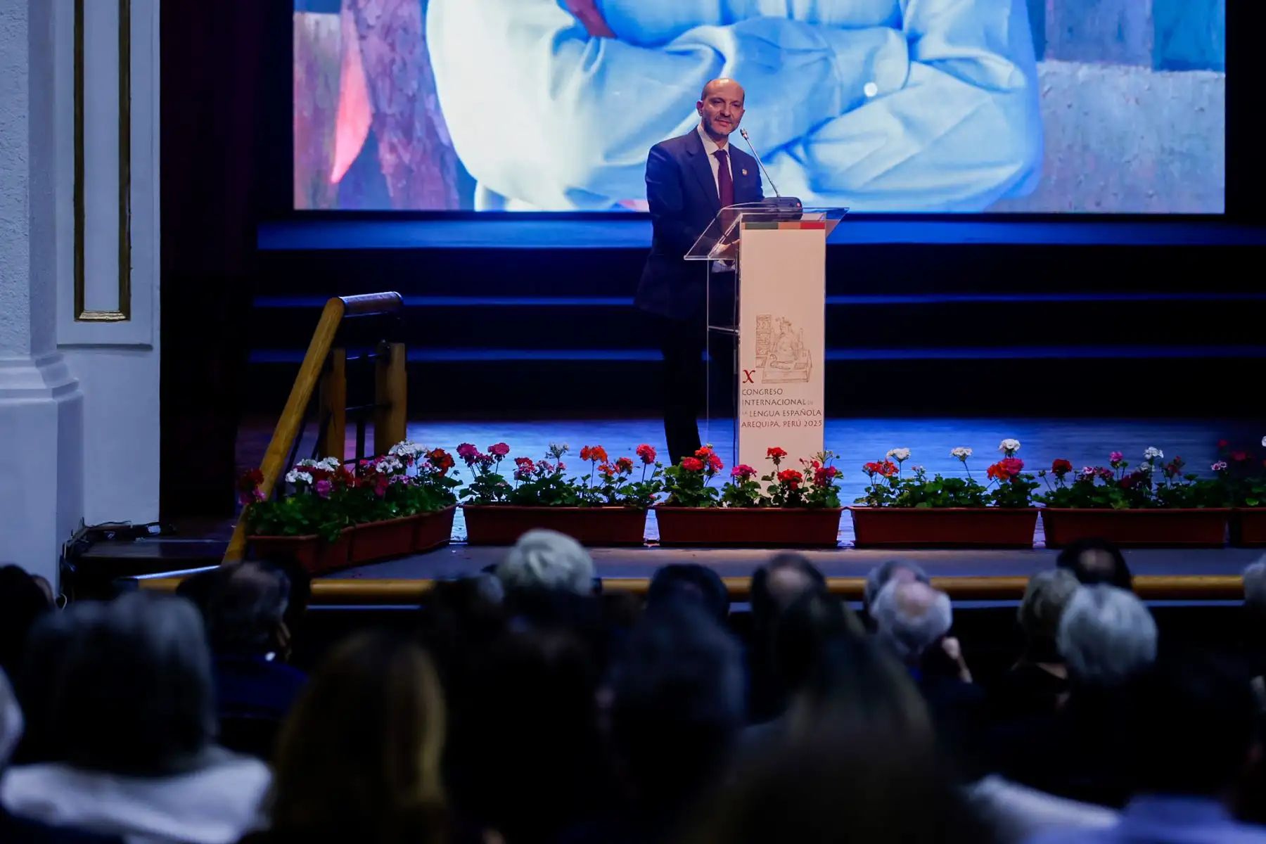 15/10/2025 El X Congreso Internacional de la Lengua Española rindió homenaje al Nobel peruano Mario Vargas Llosa en el Teatro Municipal de Arequipa, con la presencia del rey Felipe VI. Autoridades como Santiago Muñoz Machado, Luis García Montero y Eduardo Hopkins destacaron su defensa de la verdad, su rebeldía y su influencia en la literatura hispana. Escritores como Alonso Cueto, Carlos Granés y Javier Cercas resaltaron su legado universal. Foto: ANDINA/Luis Iparraguirre
