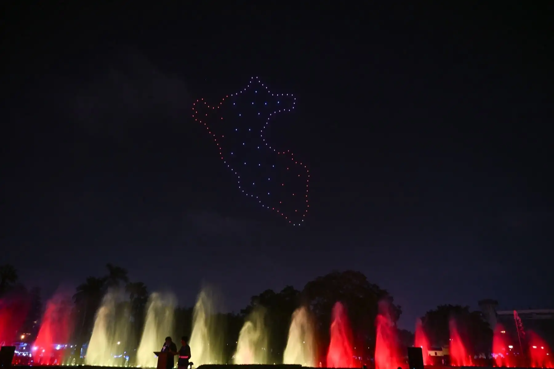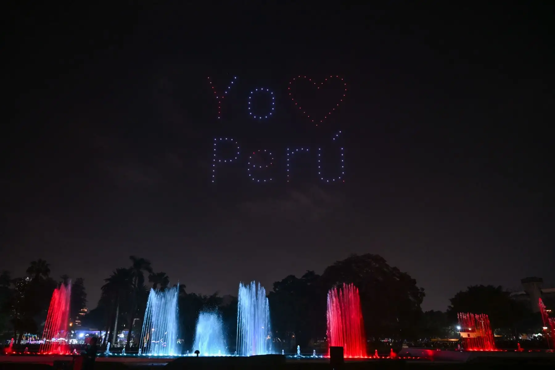 28/07/2025 Por primera vez en la historia del Circuito Mágico del Agua se presentó un espectáculo especial por Fiestas Patrias. Más de cien drones iluminarón el cielo limeño como estrellas en movimiento, transformándolo en una gran pantalla de luces. Foto: ANDINA/Difusión SERPAR