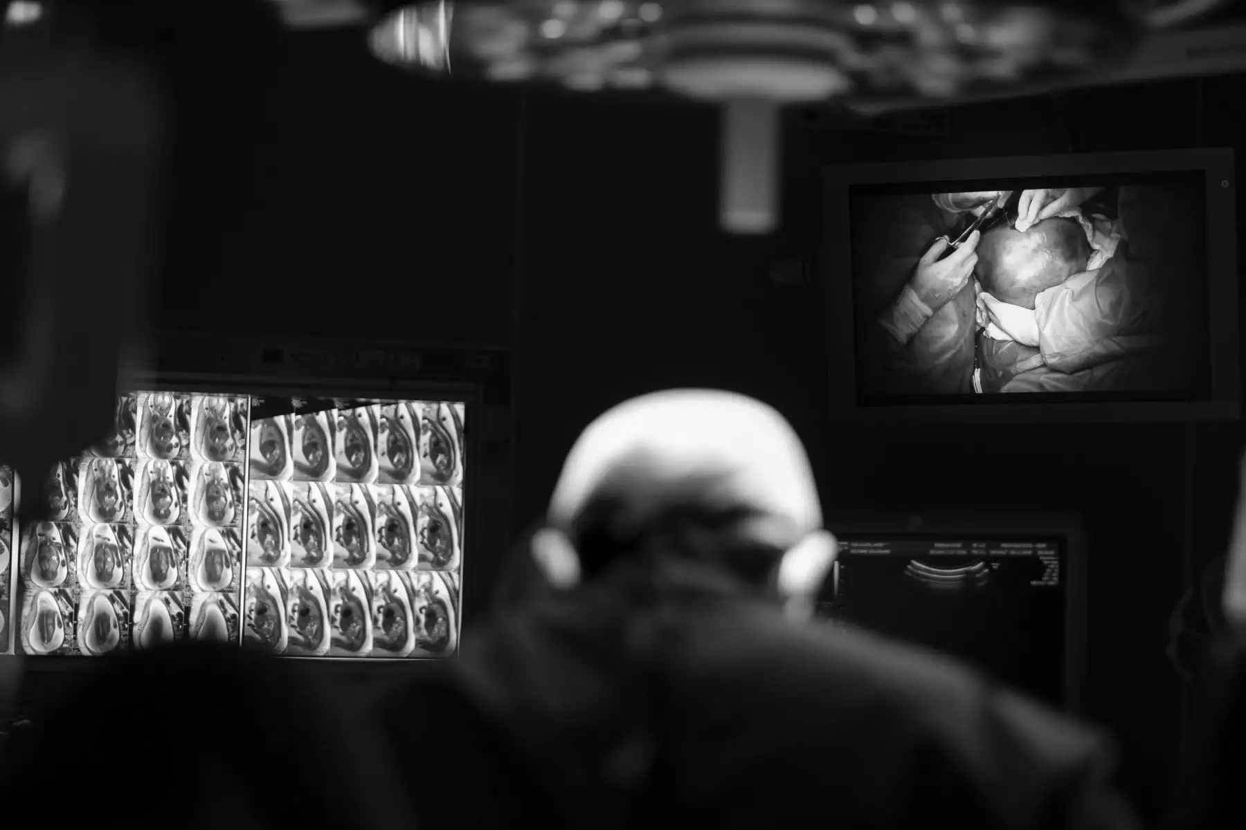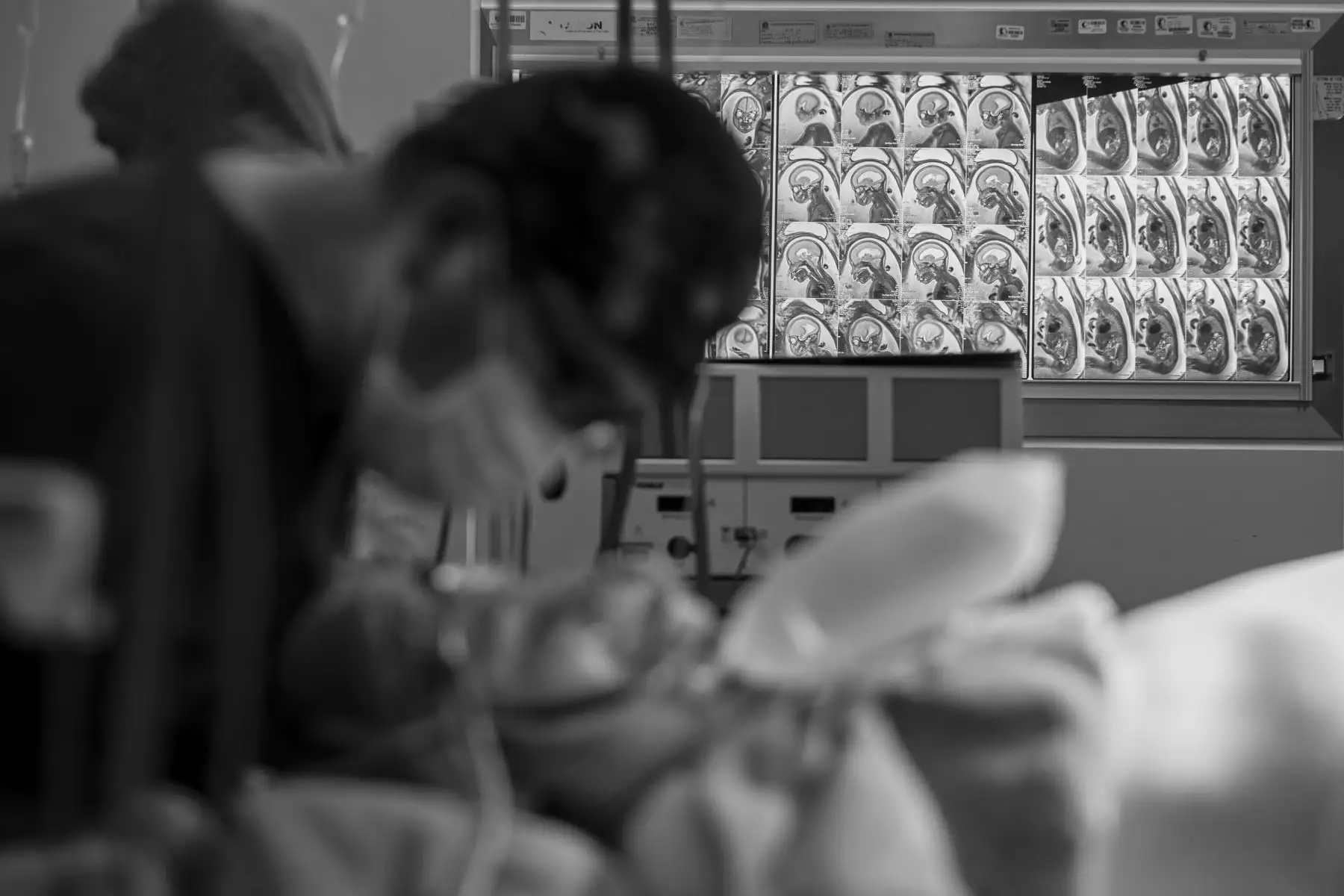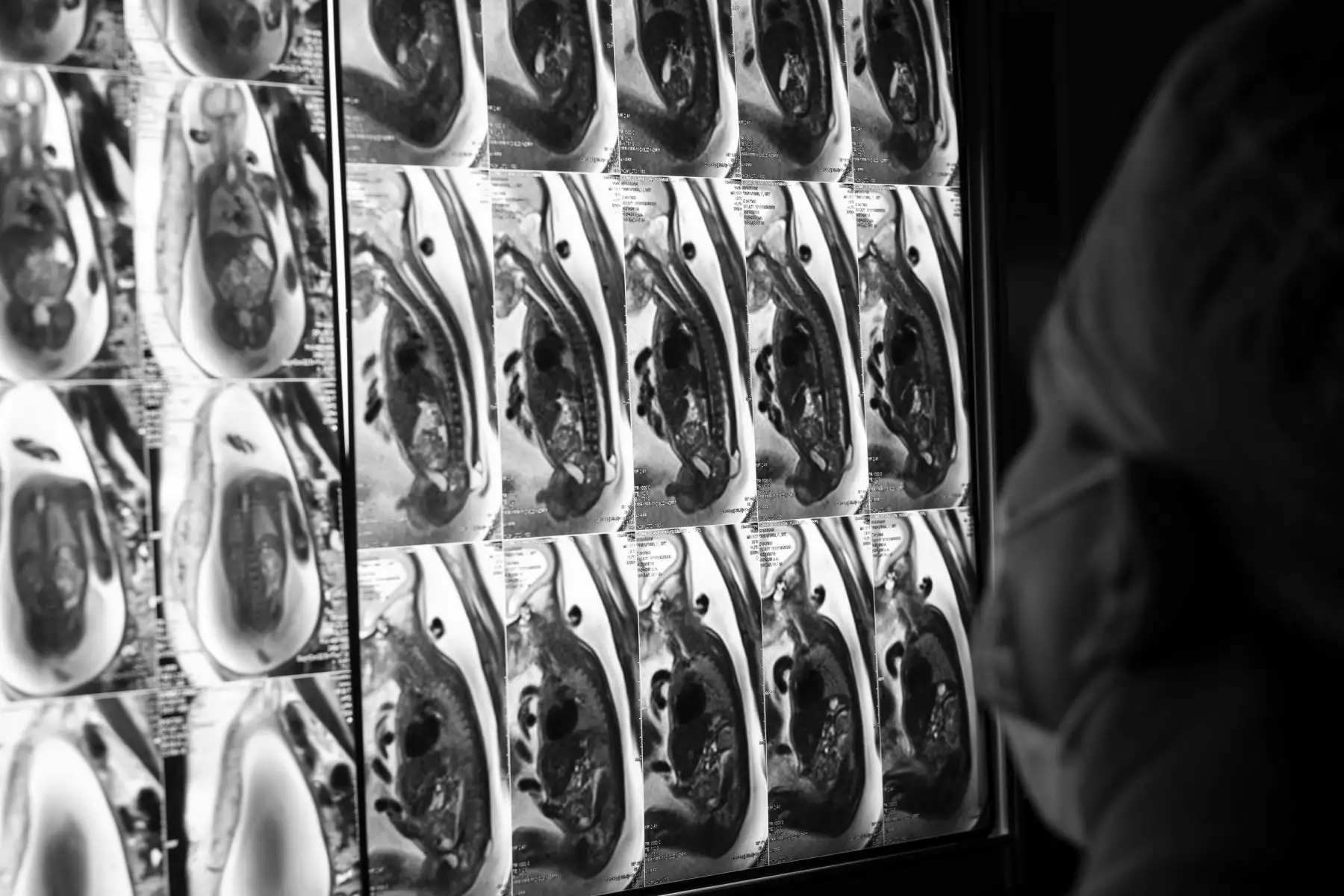 24/01/2021 En la pared está el megatoscopio que muestra en placas de resonancia magnética el cuerpo del feto y el detalle del defecto en su espalda. Una fracción minúscula de tejido será intervenida.