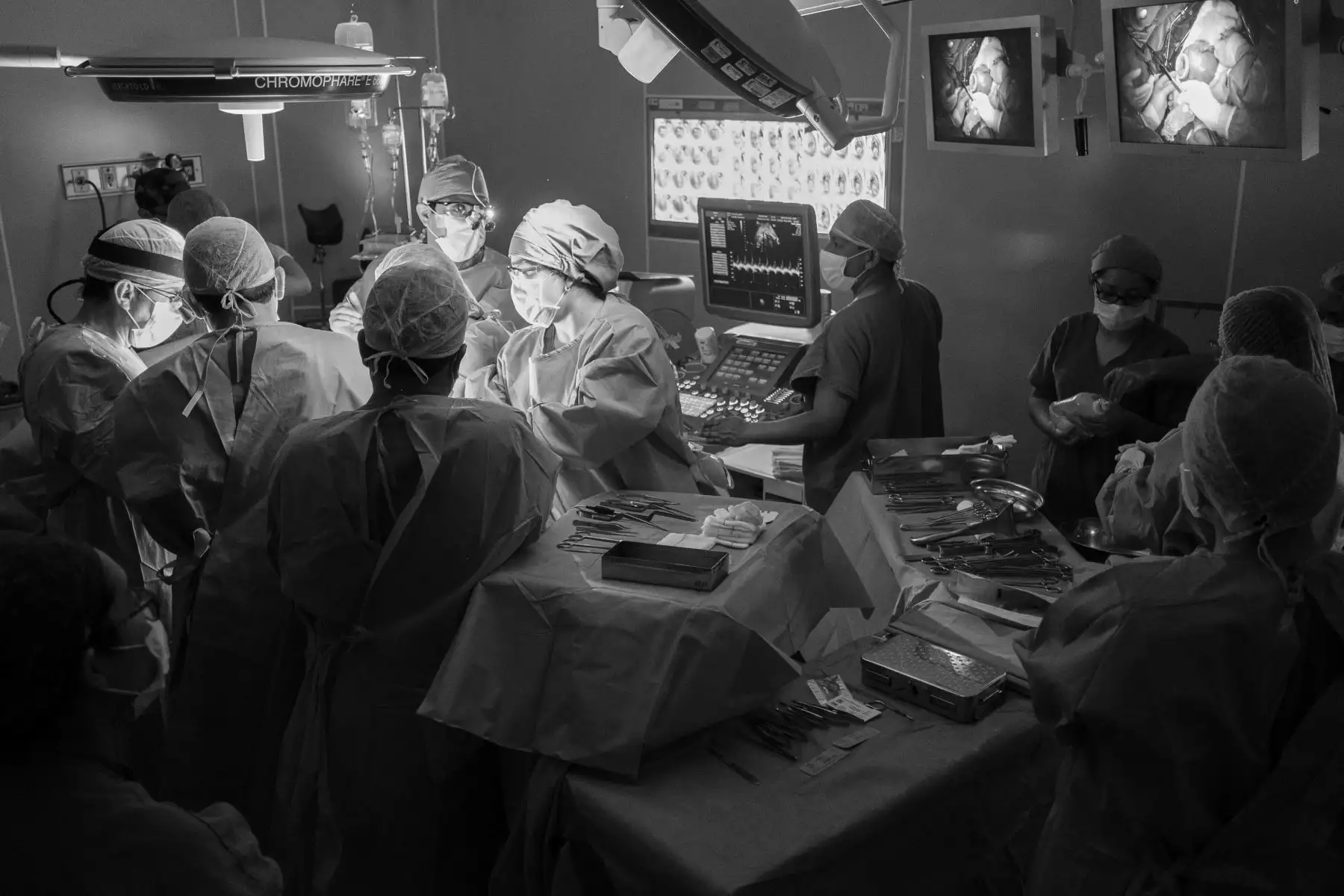 24/01/2021 Momento crucial. Toman la posta de la operación el neurocirujano Marco Mejía y su asistente. Ellos inician la microcirugía apoyados por lupas que amplifican visualmente los tejidos que intervienen. Entre 30 y 40 minutos tardarán en corregir el defecto congénito situado en la médula espinal del feto.