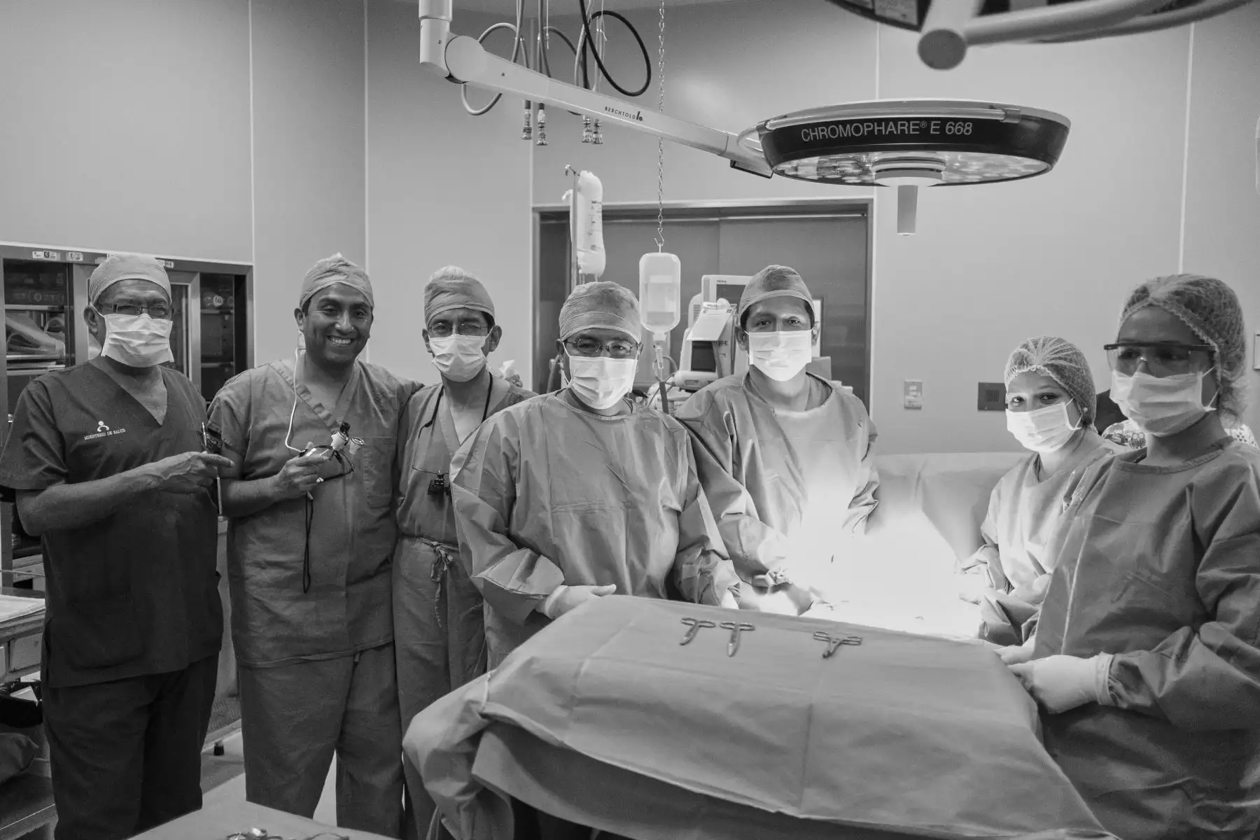 24/01/2021 Equipo médico especializado del INMP, luego de una operación de espina bífida. De izquierda a derecha: Dr. Luis Sandoval, Dr. Hernán Cañari, Dr. Marco Mejía, Dr. Alex Vila, Dr. Walter Ventura, Dra. Cecilia Ibañez y la Lic. Edith Chuquiyauri.