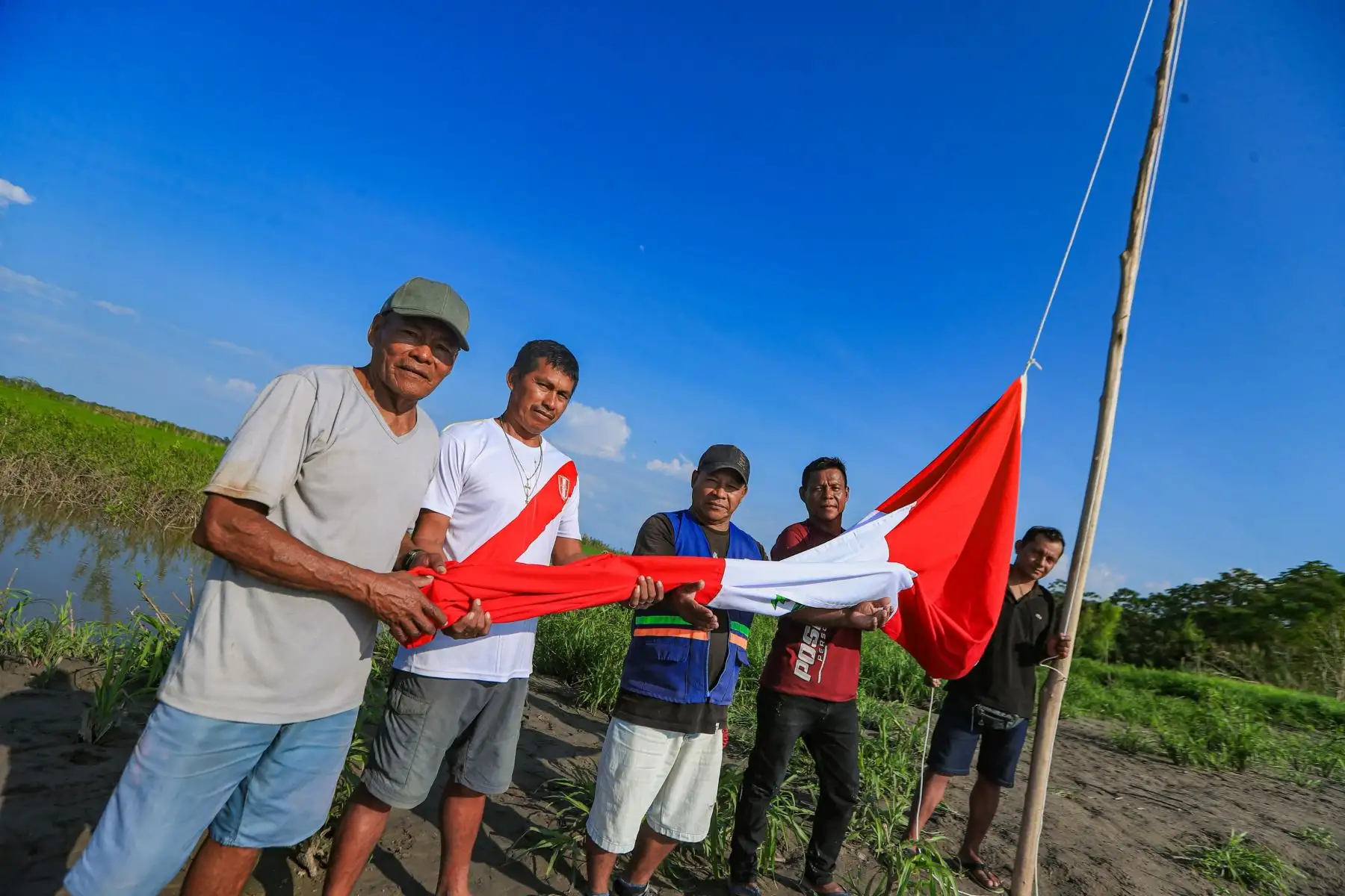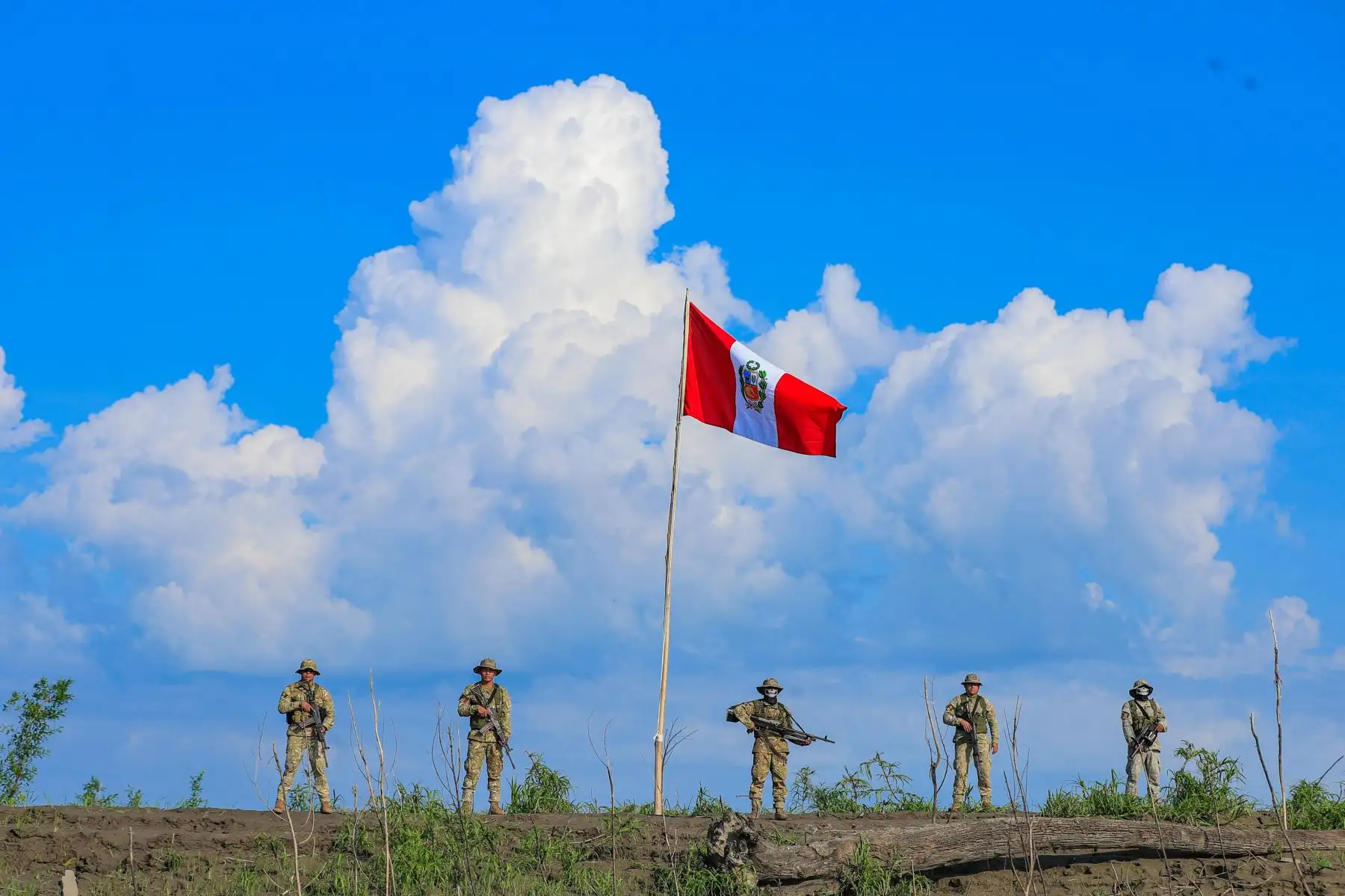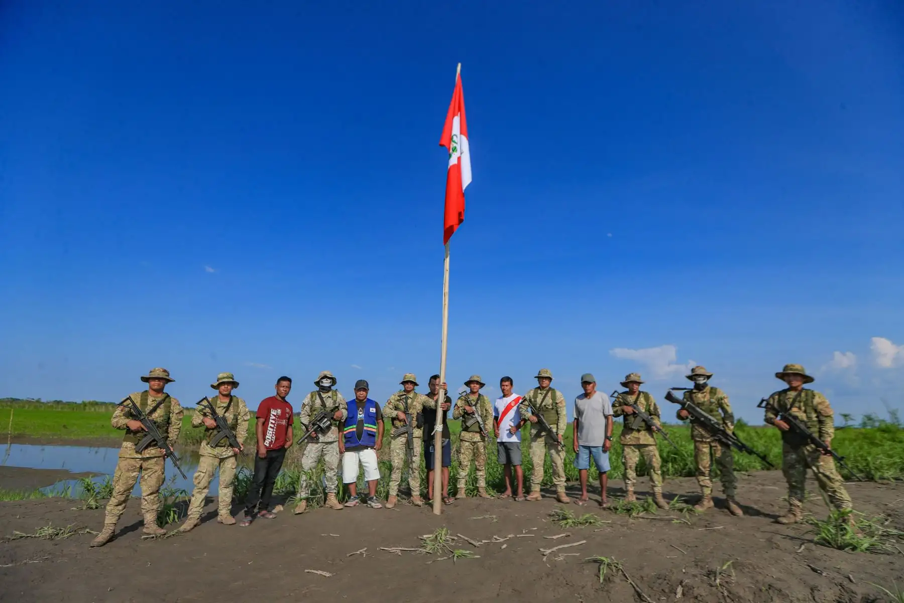 14/08/2025 iudadanos de Santa Rosa de Loreto y los miembros de las Fuerzas Armadas, que realizan patrullaje terrestre y fluvial en la frontera, comenzaron su día izando el pabellón y cantando el himno nacional. Foto: ANDINA/ Prensa Presidencia