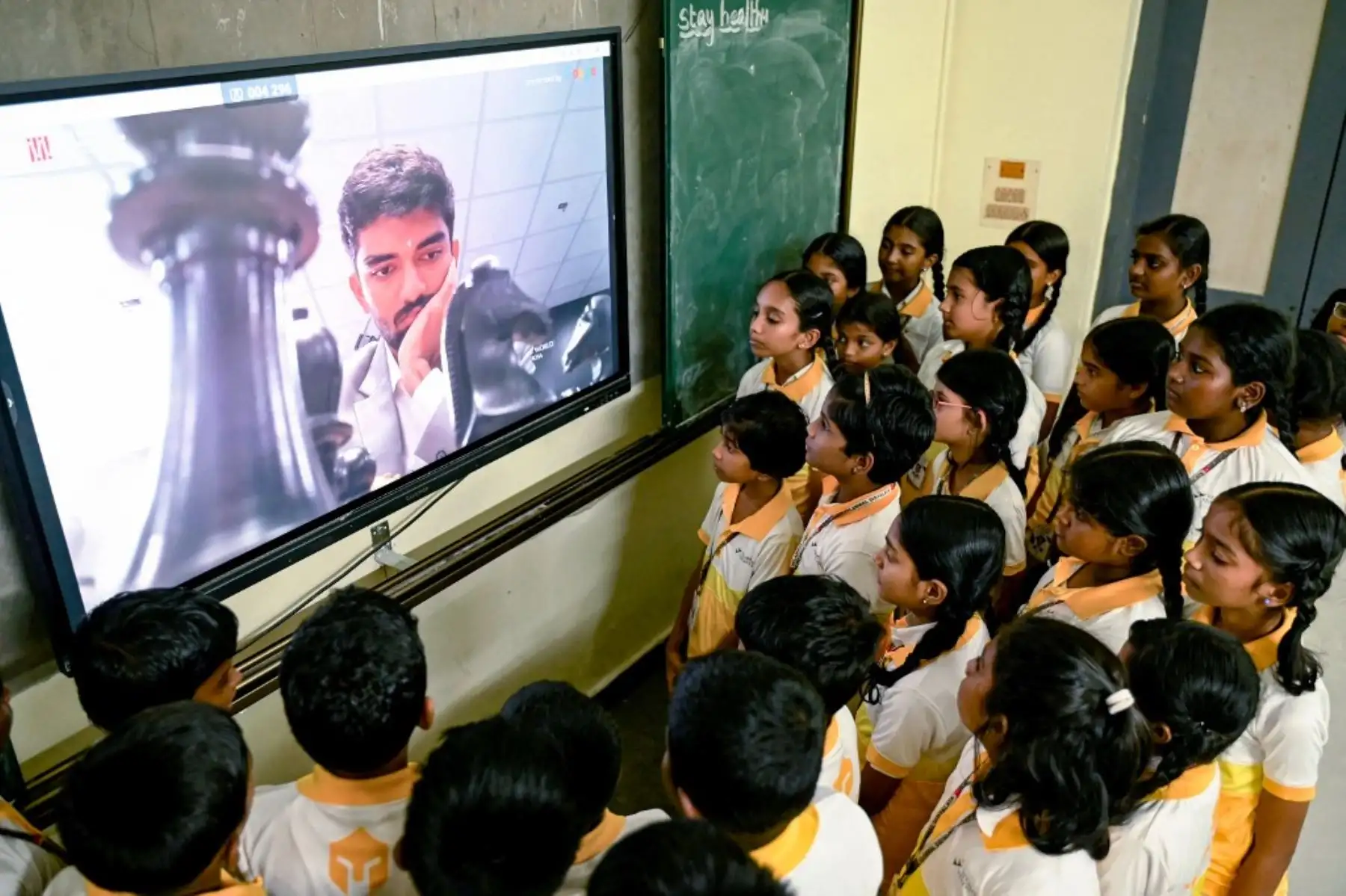 13/12/2024 A los halagos de Modi se fueron sumando con los minutos los de otras figuras de la alta política de la India, así como empresarios, o el propio Anand, todos ellos rendidos ante el hito del joven ajedrecista. Foto: AFP