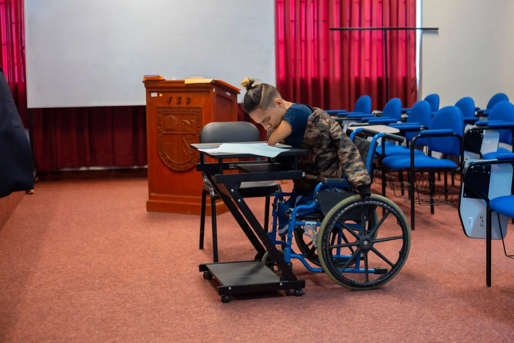 23/10/2018 Yorlan Guerrero Pacosh hace honor a su apellido. Le faltan los brazos y las piernas, pero le sobran las ganas de salir adelante. El joven rindió el examen de admisión de la Universidad Nacional Santiago Antúnez de Mayolo (Unasam) de Huaraz, en la región Áncash, para convertirse en economista. Foto: ANDINA/Difusión