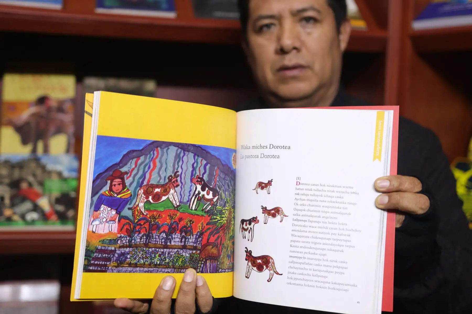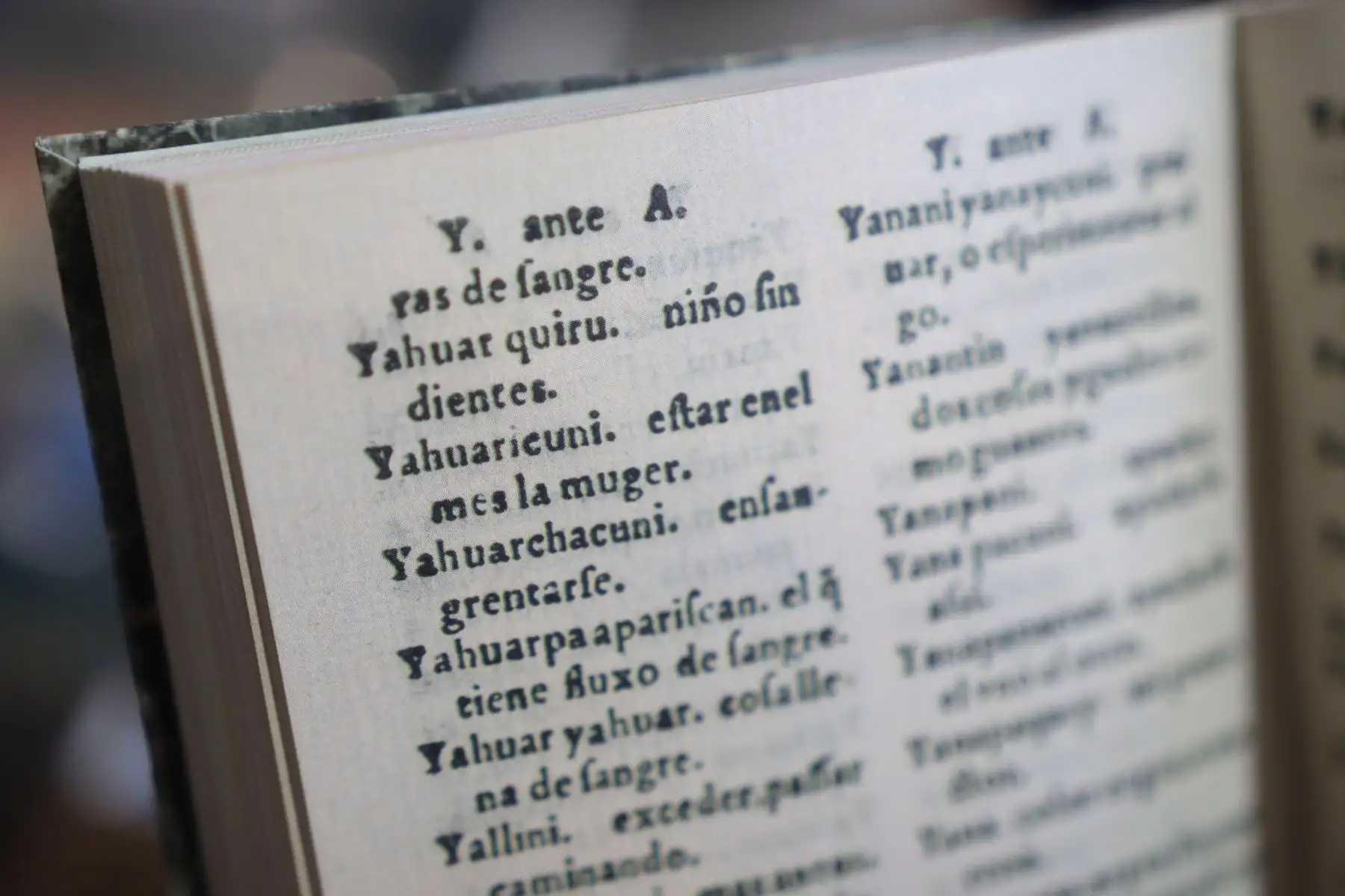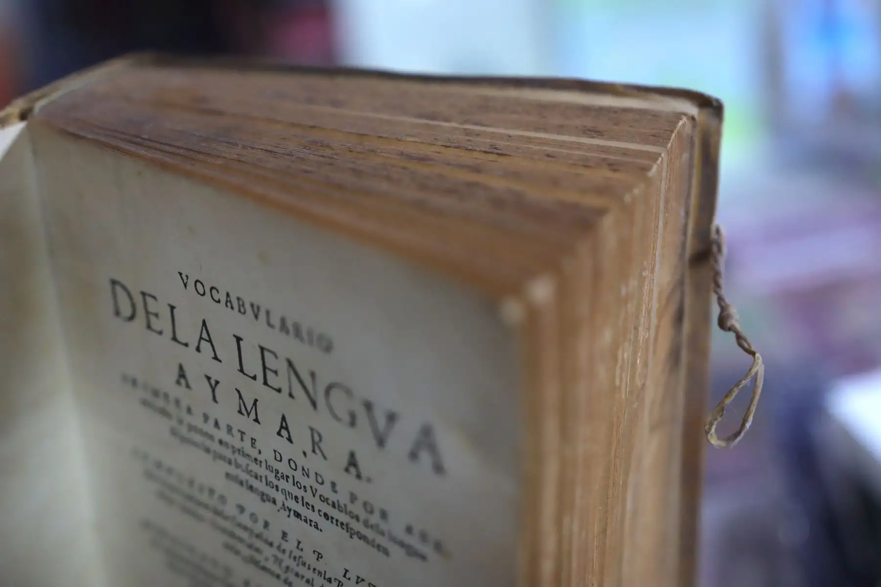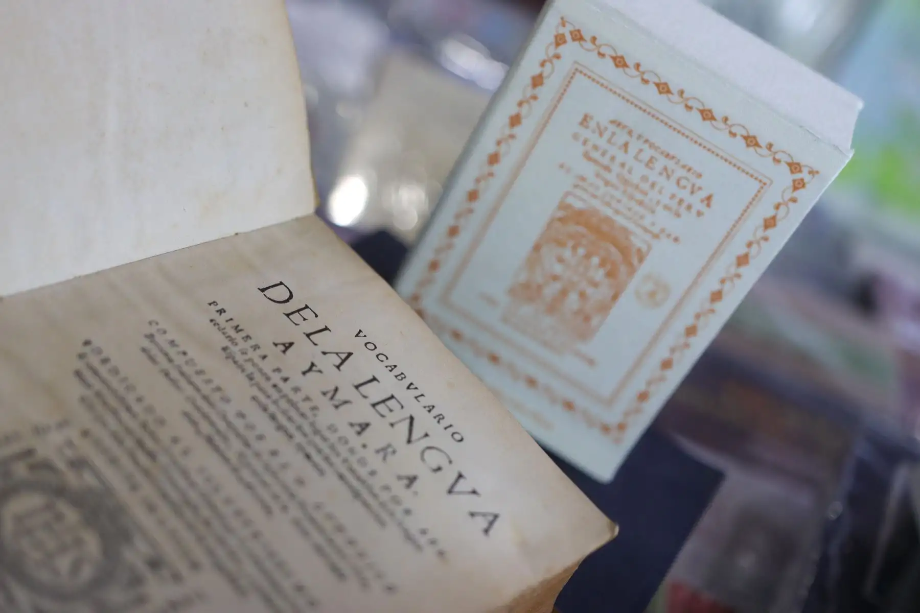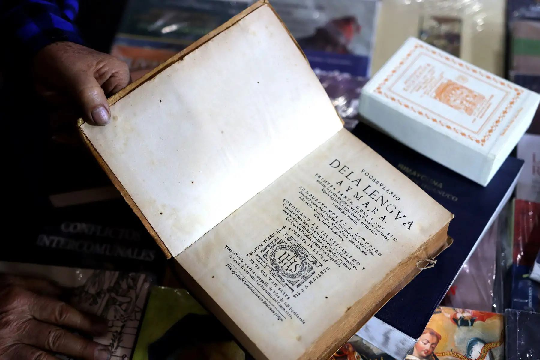 23/07/2024 Libros de la lengua Aymayra del año 1612, La Cultura Puquina, el primer quechuario 1585 (faximil). Librería Ideal. Stand 137.28 Feria Internacional del Libro de Lima. Libros, cuentos, ilustraciones, memorias, facsímiles en lengua Quechua, Puquina, Aymara, Shi-pibo, Ashaninka entre otros. Se exhiben en diversos stands de la feria. Foto: ANDINA / Lino Chipana
