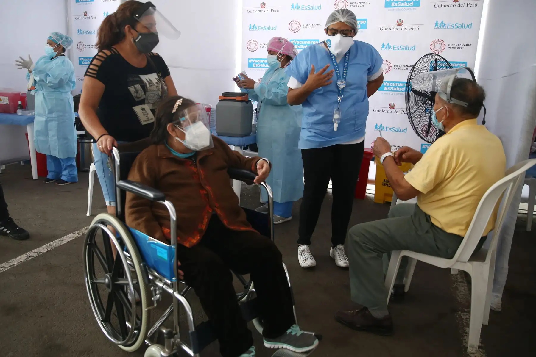 01/05/2021 Continúa el proceso de inmunización contra la covid-19 a los adultos mayores de 70 años, que viene desarrollándose en el marco de la estrategia gubernamental de vacunación territorial universal en Plaza Norte de Independencia.