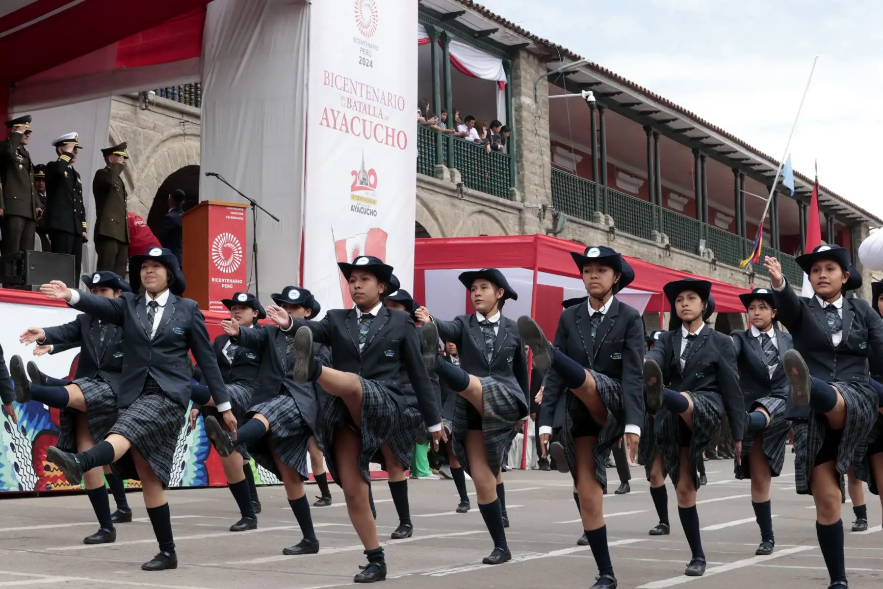 08/12/2024 Escolares desde la Plaza de Armas de Ayacucho, batallones históricos participan en desfile por el Bicentenario de la Batalla de Ayacucho. Foto: ANDINA/Vidal Tarqui