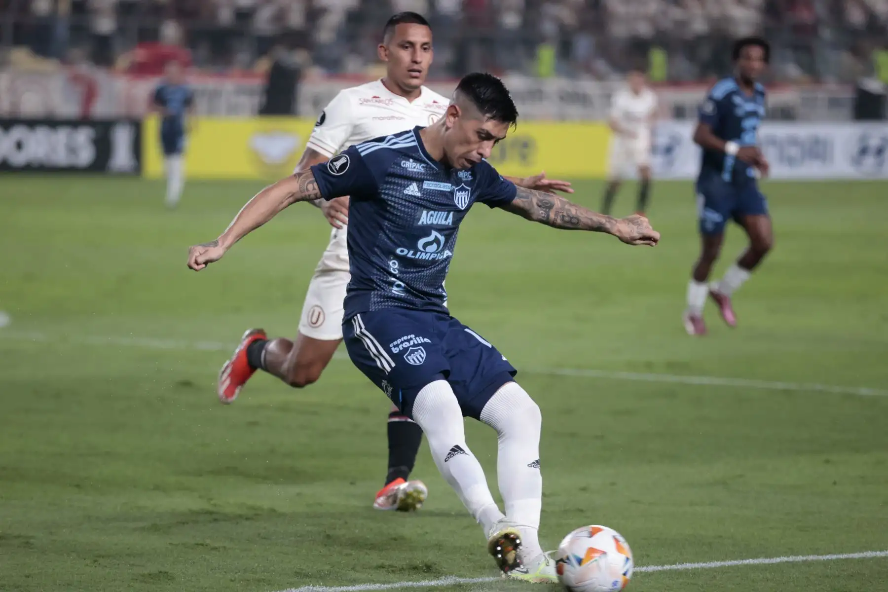 07/05/2024 Bryan Castrillón del Junior de Colombia anotó el primer gol para su equipo contra Universitario de Deportes, durante el partido por el grupo D de la fase de grupos de la Copa Libertadores 2024 en el Estadio Monumental U Marathon de Ate. Foto: ANDINA/Vidal Tarqui