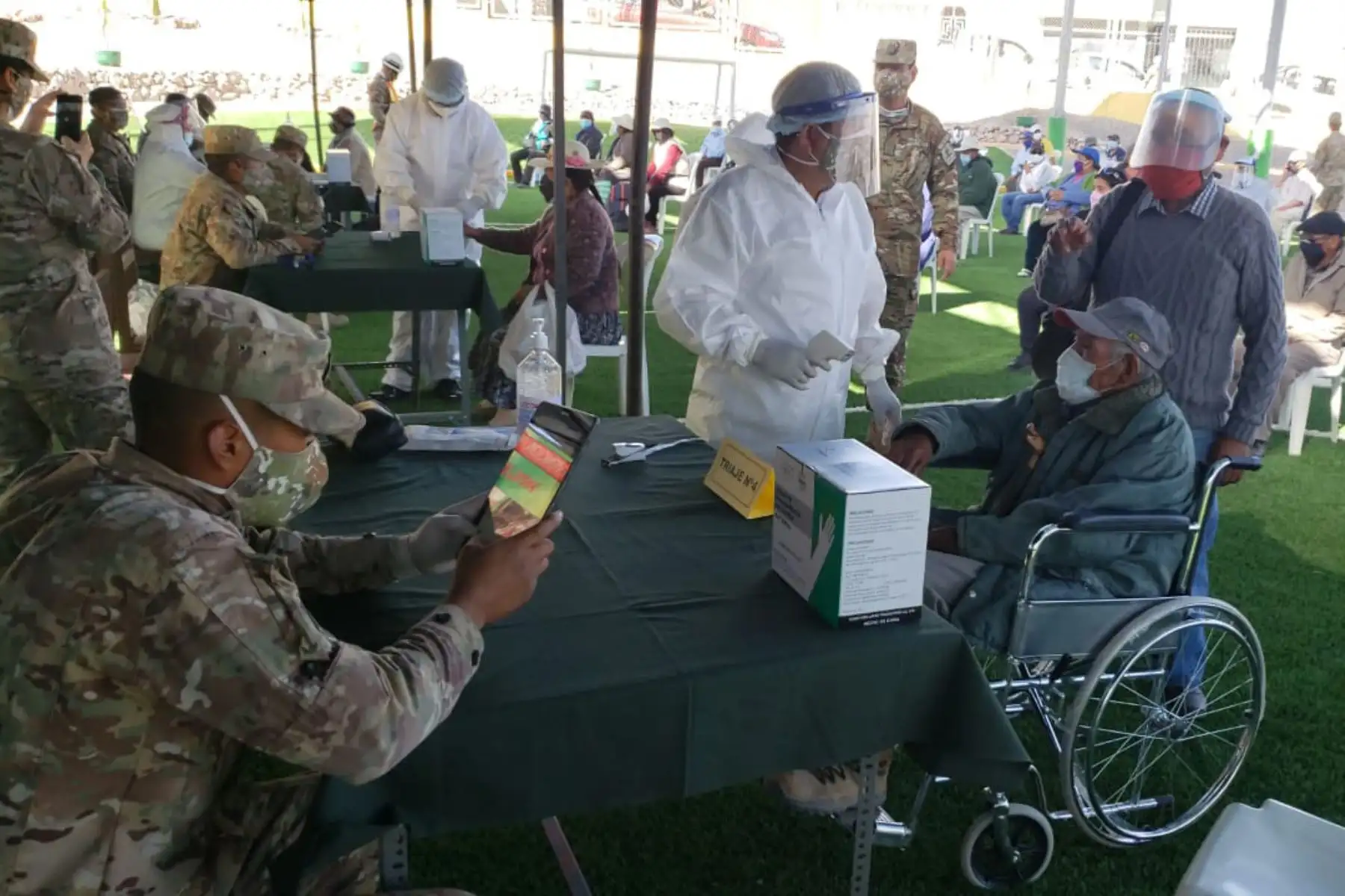 06/08/2020 El Ejército del Perú inició campaña de salud en Moquegua junto a otras entidades del Estado a fin de ayudar a los adultos mayores y personas vulnerables frente a la covid-19 como parte del operativo Tayta.