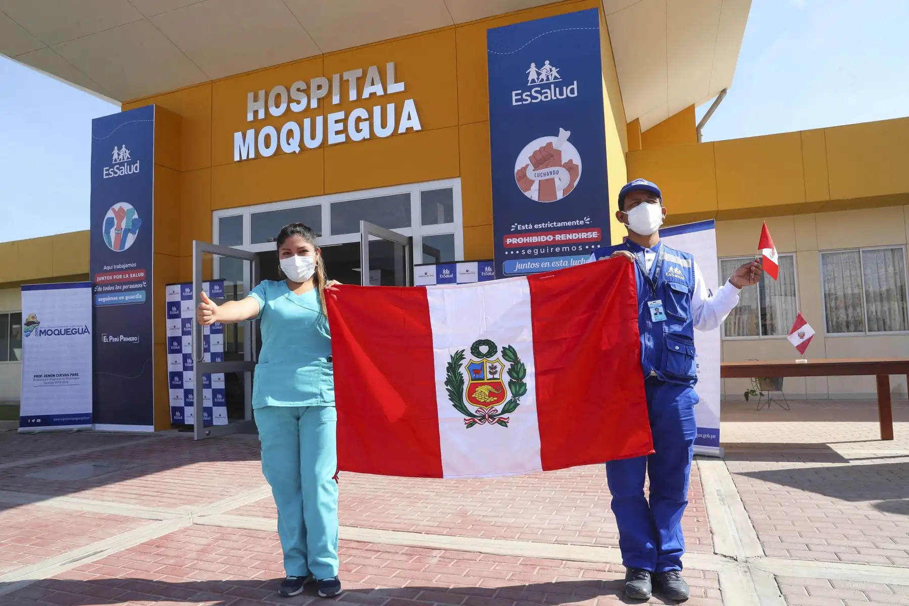06/09/2020 El presidente Martín Vizcarra junto a la presidenta ejecutiva de Essalud, Fiorella Molinelli, supervisa el Hospital de Contingencia de Moquegua con el objetivo de verificar que se brinde una adecuada atención a los pacientes Covid-19. Foto: ANDINA/Prensa Presidencia