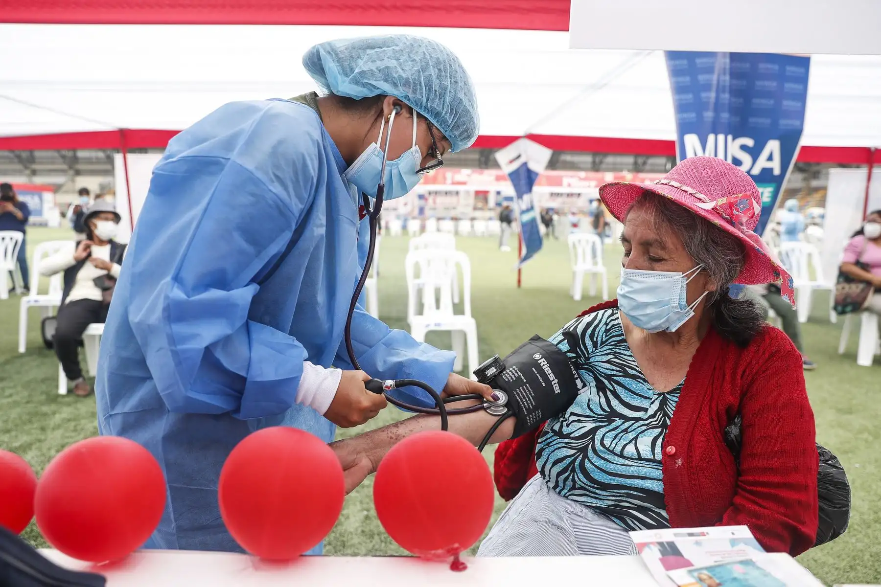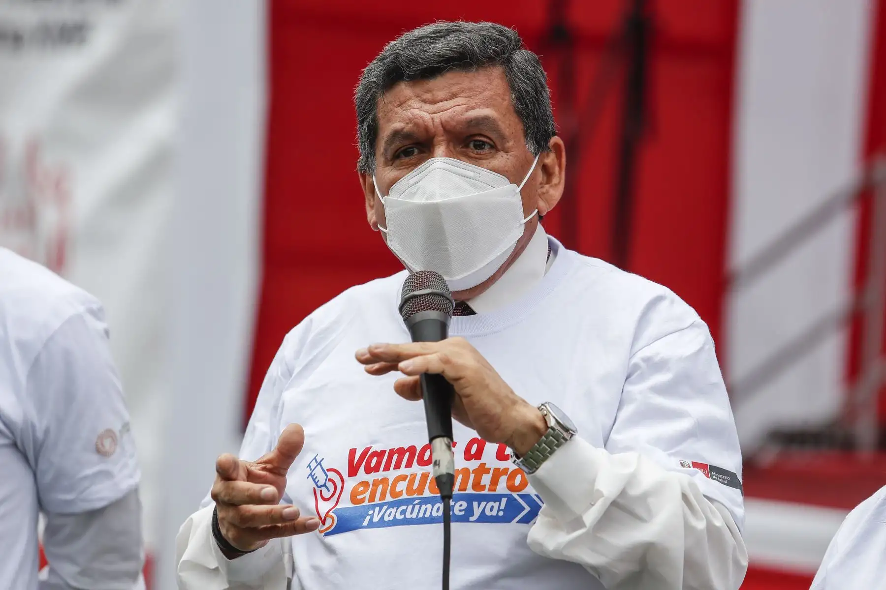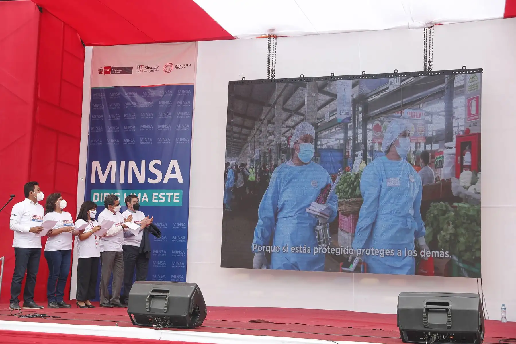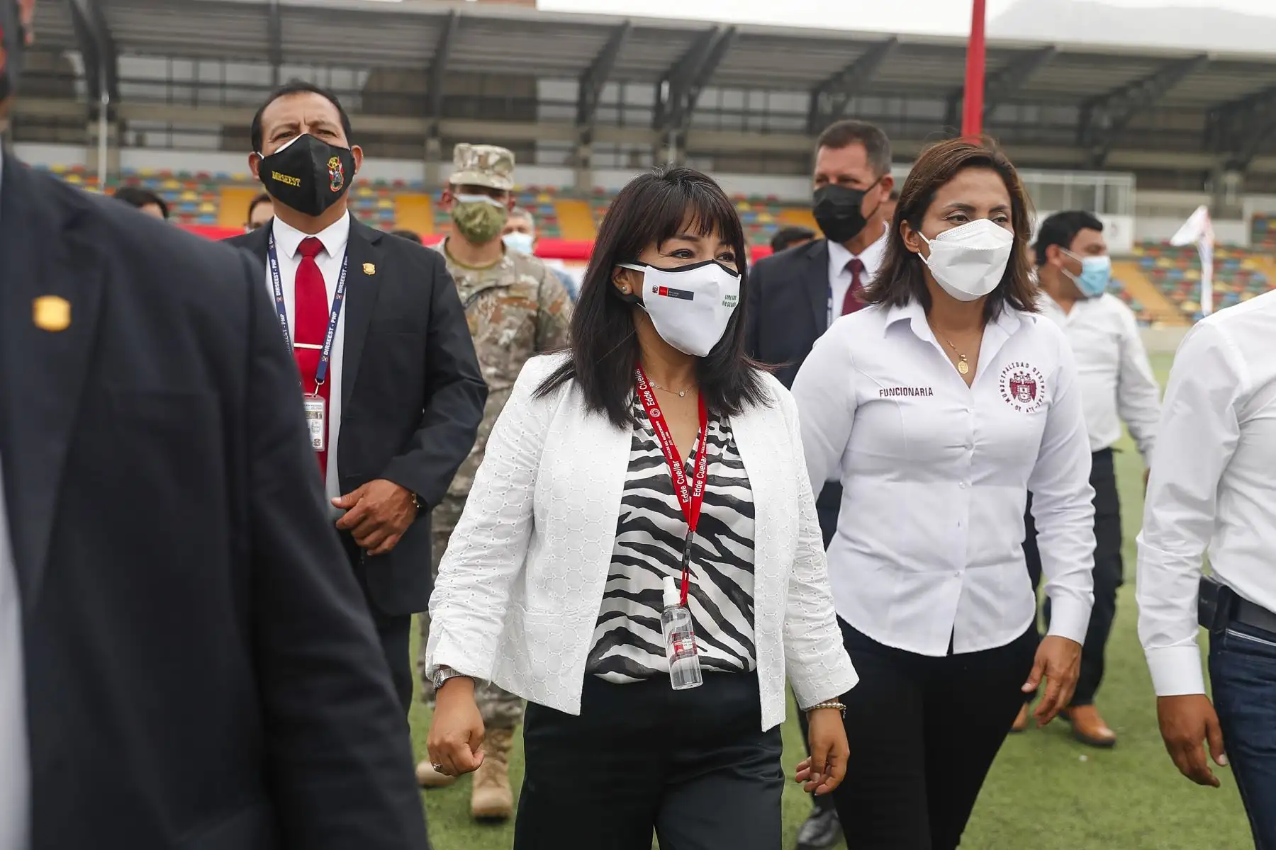17/12/2021 La titular del PCM, Mirtha Vásquez, junto al ministro de Salud, Hernando Cevallos y la ministra de Inclusión Social, Dina Boluarte; participaron en el lanzamiento de la canción "El futuro está en nuestras manos” que sensibiliza a la población sobre la importancia de recibir las dos dosis de la vacuna contra la covid-19. El evento se desarrolló Complejo Deportivo Ollantaytambo, en Ate. Foto: ANDINA/Renato Pajuelo