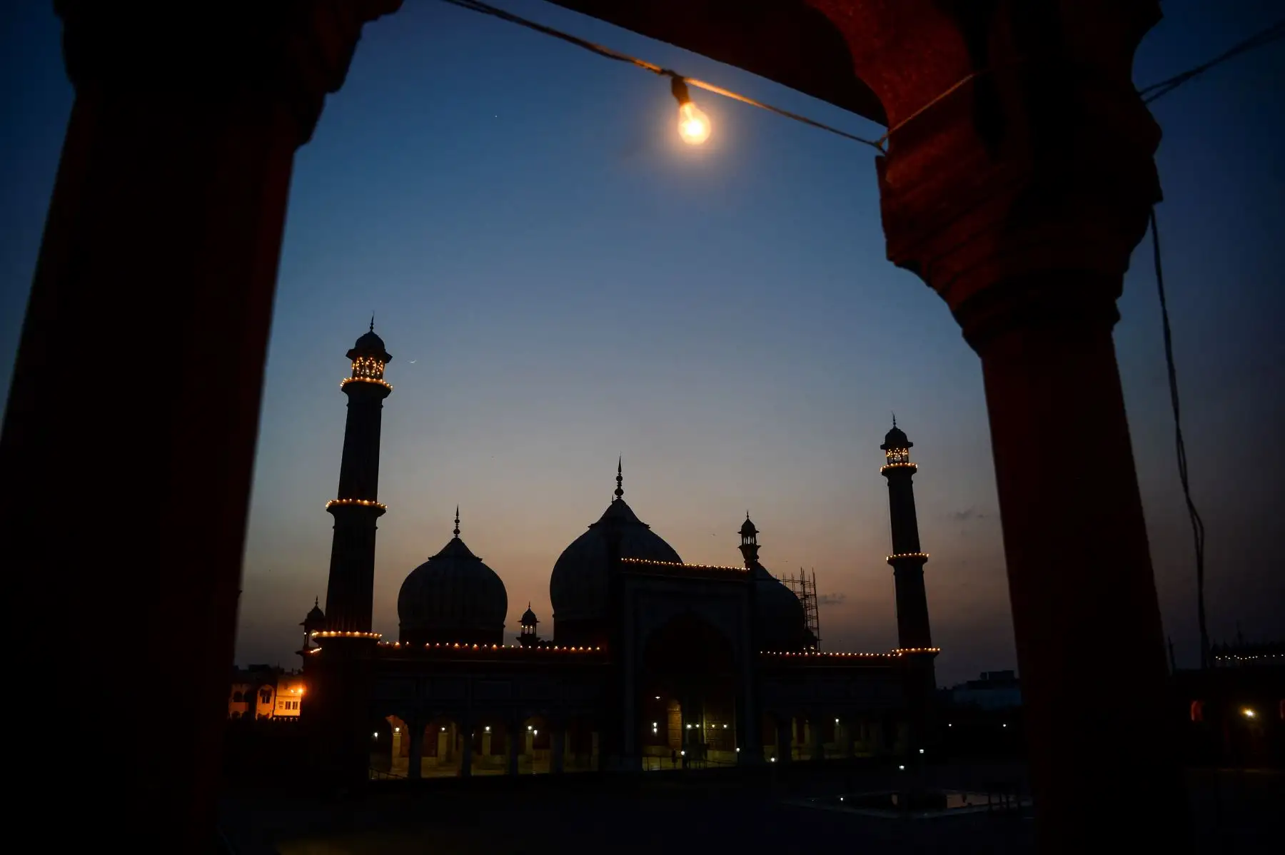 25/04/2020 Una mezquita iluminada de Jama Masjid se representa el primer día del mes de ayuno musulmán del Ramadán bajo un bloqueo nacional impuesto por el gobierno como medida preventiva contra la propagación del coronavirus. Foto: AFP