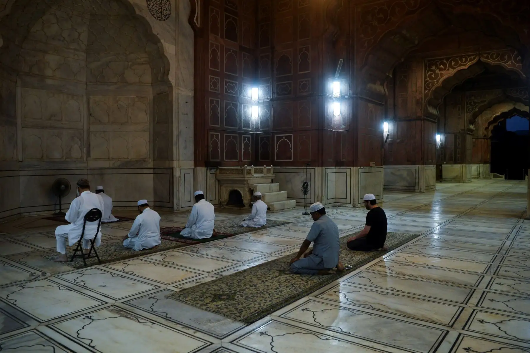 25/04/2020 Los cuidadores de la mezquita Jama Masjid ofrecen oración el primer día del mes de ayuno musulmán del Ramadán bajo un bloqueo nacional impuesto por el gobierno como medida preventiva contra la propagación del coronavirus. Foto: AFP
